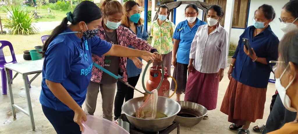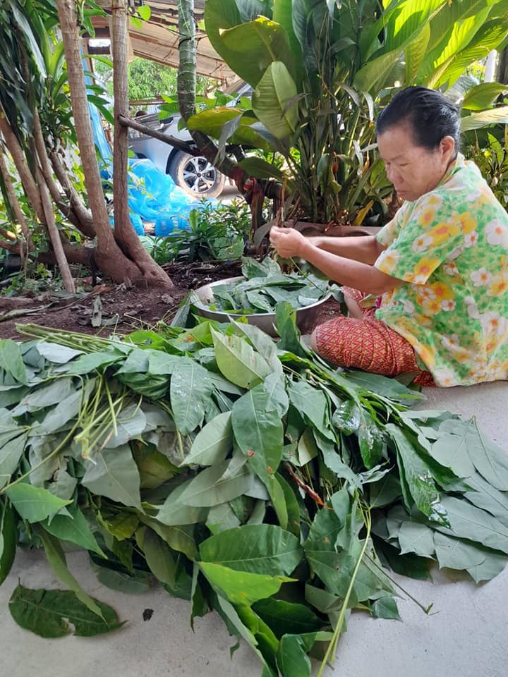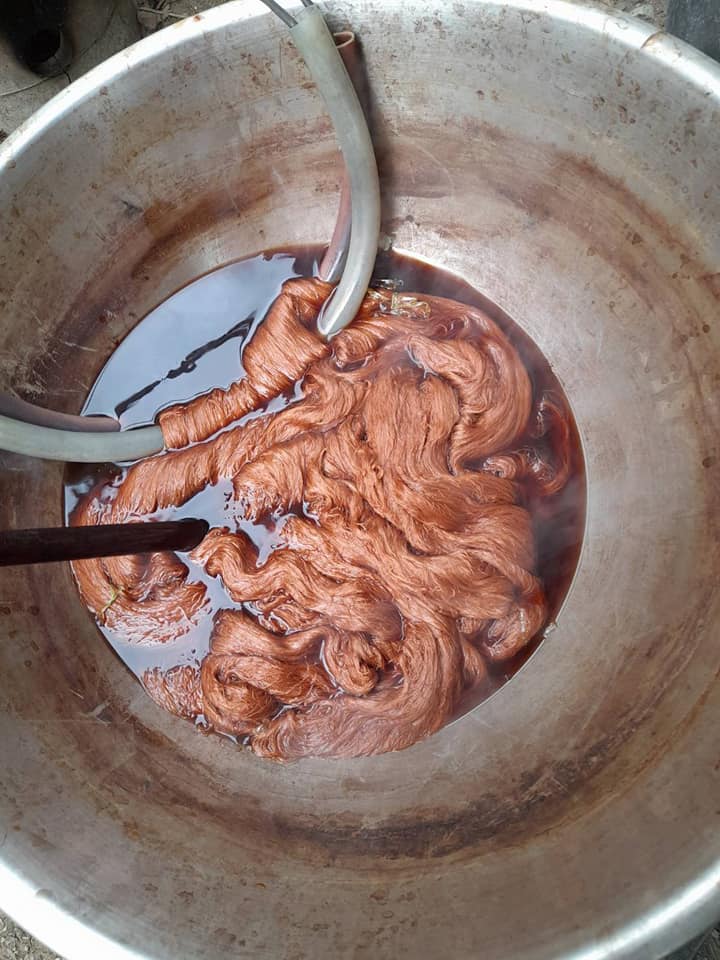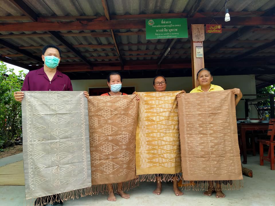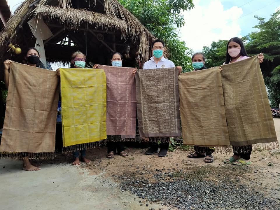 รองศาตราจารย์สมบัติ กล่าวว่า เดิมทีกลุ่มทอผ้าในตำบลสายตะกู ส่วนใหญ่ผลิตผ้าซิ่นไหมหรือด้ายใยประดิษฐ์จากการย้อมด้วยสีเคมี การออกแบบลวดลายมัดหมี่ใช้ลายดั้งเดิมหรืออาจมีการประยุกต์ให้เกิดลายใหม่ แต่ผืนผ้ามัดหมี่โดยขนาดกว้าง 1เมตร ยาว 2 เมตร เพื่อตัดเย็บเสื้อผ้าราคาต่อผืนประมาณ 2,500 – 3,000 บาท ทำให้นักท่องเที่ยวหรือลูกค้าผู้มาเยือนที่ต้องการสินค้าที่ระลึกที่ราคาต่อผืนไม่สูงนักไม่สามารถซื้อได้ หรือ ลูกค้าที่ต้องการซื้อสินค้าที่พร้อมใช้งานไม่ต้องนำไปตัดเย็บก็ไม่สามารถเลือกซื้อได้ โครงการจึงมีแนวคิดให้กลุ่มผลิตเป็นผ้าคลุมไหล่มัดหมี่ขนาดกว้าง 65 เซนติเมตร ยาว 2 เมตร ย้อมสีธรรมชาติ ทำให้ราคาสินค้าต่อผืนต่ำกว่าเดิมและเป็นสินค้าแปรรูปใช้งานได้ทันที เหมาะเป็นของฝากสำหรับนักท่องเที่ยว ขณะเดียวกันได้ส่งเสริมองค์ความรู้เพื่อเพิ่มมูลค่าผลิตภัณฑ์ ในเรื่องการออกแบบลวดลายมัดหมี่ลายเครื่องแขวนไทยดอกไม้สด และจัดอบรมเชิงวิชาการเรื่องการย้อมสีจากพืชพันธุ์ในท้องถิ่น ตามวิถีธรรมชาติเช่น ใบยางพารา,ใบแก้ว,ใบมะม่วงป่า,ใบสัก,เปลือกต้นหมากเบ็ง (ลูกหยี),แก่นก้านเหลืองฝักคูน และ เม็ดคำแสด โดยใช้กระบวนการย้อมตามหลักการทางวิทยาศาสตร์ ผลการอบรมได้เฉดสีทั้งหมด 11 สี ซึ่งผู้เข้าอบรมยังมีความสนใจต้องการทดลองใช้วัสดุธรรมชาติอื่นๆ อีกที่มี เช่น เปลือกต้นตะกู,ใบหูกวาง,ใบสบู่เลือด,เปลือกประดู่,เปลือกมะพร้าวสด,ขมิ้น เป็นต้น ทำให้ได้เฉดสีที่มีความสวยงามละมุนตา และเพื่อเป็นการยกระดับผลิตภัณฑ์ชุมชน ได้มีการไปขอรับมาตรฐานผลิตภัณฑ์ชุมชน ( มผช.) ซึ่งปัจจุบันอยู่ในระหว่างขั้นตอนการตรวจสอบจากกระทรวงอุตสาหกรรม รวมถึงการออกแบบและผลิตบรรจุภัณฑ์ที่ส่งเสริมภาพลักษณ์ของสินค้า Eco Friendly Product เพื่อเพิ่มมูลค่าให้กับสินค้าตอบสนองความต้องการของผู้บริโภค