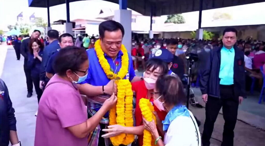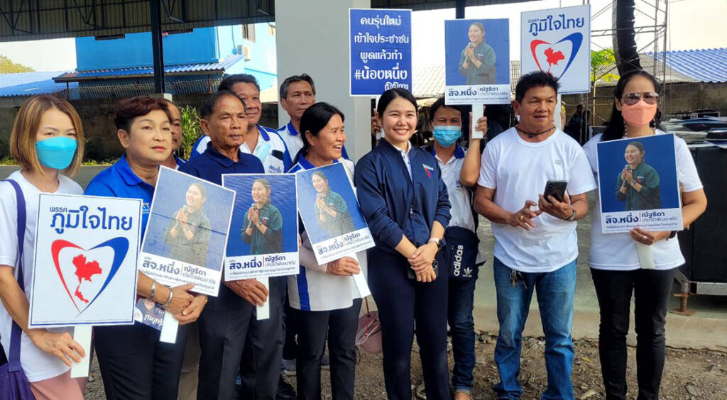 เมื่อเวลา 15.00 น. วันที่ 5 มีนาคม 2566 ที่หมู่บ้านไวท์เฮ้าท์ จังหวัดปทุมธานี นายอนุทิน ชาญวีรกูล หัวหน้าพรรคภูมิใจไทย และคณะผู้บริหารพรรค นายสรอรรถ กลิ่นประทุม ประธานที่ปรึกษาพรรคภูมิใจไทย, นายศุภชัย ใจสมุทร ส.ส.บัญชีรายชื่อ และนายทะเบียนพรรคภูมิใจไทย ลงพื้นที่ช่วยนางสาว ณัฐธิดา เกียรติพัฒนาชัย แนะนำนโยบาย มีประชาชนกว่า 1,500 คน ต้อนรับ