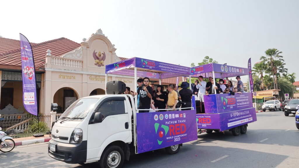 ทั้งนักสนุกเกอร์และผู้จัดงานได้ขึ้นขบวนรถแห่ ตามเส้นทางรอบตลาดเมืองปทุมธานี มุ่งสู่มารีน่า แจ๊ส คอนโด ตำบลบางโพธิ์เหนือ อำเภอสามโคก จังหวัดปทุมธานี รวมระยะทาง 3 กิโลเมตร ตลอดเส้นทางมีประชาชนให้การตอนรับนักกีฬาสนุกเกอร์คล้องพวงมาลัย และชิมอาหารของอร่อยเมืองปทุมธานี ได้แก่ ก๋วยเตี๋ยวเรือโกฮับ เมี่ยงกลีบบัวป้าต้อย ขนมถ้วยคุณสมควร ข้าวแช่รามันคุณส้ม ลูกชุบคุณอ้อ ไวน์ไนฟ์แบล็คฮอร์ส ถือเป็นประวัติศาสตร์ของเมืองปทุมธานีที่ได้ต้อนรับนักกีฬาระดับโลก และเป็นการเอานักกีฬาสนุกเกอร์อาชีพระดับโลกมาแข่งขันมากที่สุดในประวัติศาสตร์นับตั้งแต่มีการแข่งขันสนุกเกอร์ 6 แดงชิงแชมป์โลกเกิดขึ้นในเมืองไทย พร้อมชิงเงินรางวัลรวมสูงถึง 11 ล้านบาท โดยการแข่งขันจะมีขึ้นระหว่างวันที่ 6 – 11 มีนาคม 2566 ที่ธรรมศาสตร์คอนเวนชั่นเซนเตอร์ (ยิม1) มหาวิทยาลัยธรรมศาสตร์ ศูนย์รังสิต ตำบลคลองหนึ่ง อำเภอคลองหลวง จังหวัดปทุมธานี.