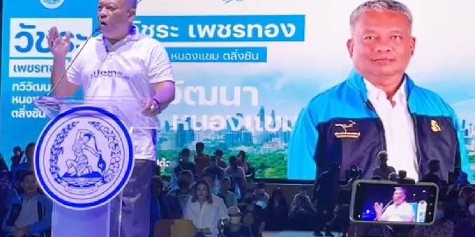ผู้สมัครส.ส.เขตหนองแขม-ทวีวัฒนา พรรคประชาธิปัตย์ ขึ้นเวทีปราศรัยกับพี่น้องชาวกทม.ที่สนามกีฬาไทย-ญี่ปุ่น ดินแดง เรียกเสียงฮือฮาจากกองเชียร์ดังสนั่นลั่นสนาม ประกาศตัวรับใช้ชาวหนองแขม-ทวีวัฒนาในการเลือกตั้งสมัยนี้ พร้อมยืนยันอย่างชัดเจนว่าจะไม่สนับสนุนพลเอกคนหนึ่งคนใดขึ้นนั่งตำแหน่งนายกรัฐมนตรีคนต่อไป เพราะพรรคประชาธิปัตย์มีนายจุรินทร์ ลักษณวิศิษฎ์ หัวหน้าพรรคพร้อมจะนั่งในตำแหน่งนี้อยู่แล้ว