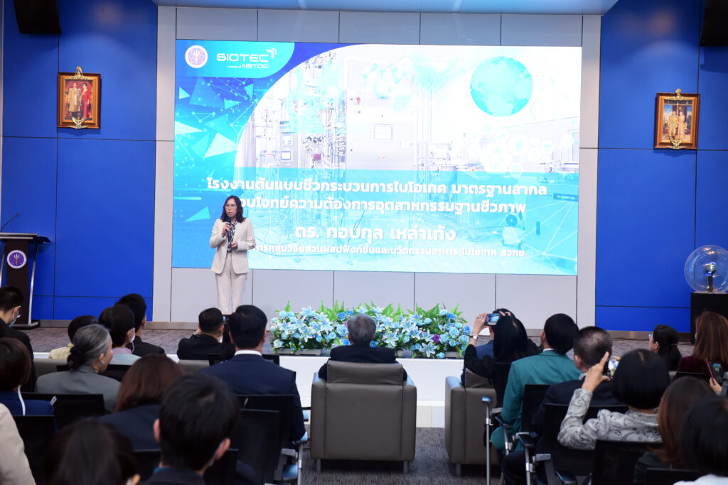 ด้าน ดร.วรรณพ วิเศษสงวน ผู้อำนวยการไบโอเทค กล่าวว่า “โรงงานต้นแบบชีวกระบวนการไบโอเทค หรือ BBF ถือเป็นหน่วยงานภาครัฐที่บุกเบิกด้านการผลิตผลิตภัณฑ์จากจุลินทรีย์ทั่วไปและจุลินทรีย์ดัดแปลงพันธุกรรม ภายใต้สถานที่ผลิตอาหาร (food-grade manufacturer) ตามมาตรฐานสากล Codex GHPs และ HACCP ที่ครอบคลุมทั้งกระบวนการต้นน้ำ และกระบวนการปลายน้ำ ตั้งแต่การพัฒนาสูตรอาหารเลี้ยงเชื้อ กระบวนการหมัก การเก็บเกี่ยวผลิตภัณฑ์ การทำเข้มข้นหรือการทำบริสุทธิ์ การทำแห้ง การผสมสูตรผลิตภัณฑ์ การวิเคราะห์ผลิตภัณฑ์ การตรวจสอบคุณภาพและอายุผลิตภัณฑ์ รวมถึงการขึ้นทะเบียนผลิตภัณฑ์ ตลอดจนให้คำปรึกษา ฝึกอบรม บริการวิชาการ และสร้างพันธมิตรด้านเทคโนโลยีชีวกระบวนการในระดับขยายทั้งในและต่างประเทศ เพื่อสร้างผลกระทบเชิงเศรษฐกิจ ยกระดับขีดความสามารถในการแข่งขันของผู้ประกอบการไทย ลดการนำเข้าและการพึ่งพาเทคโนโลยีจากต่างประเทศช่วยขับเคลื่อนเศรษฐกิจของประเทศ ไปสู่เป้าหมายการพัฒนาที่ยั่งยืนตามนโยบายโมเดลเศรษฐกิจ BCG”