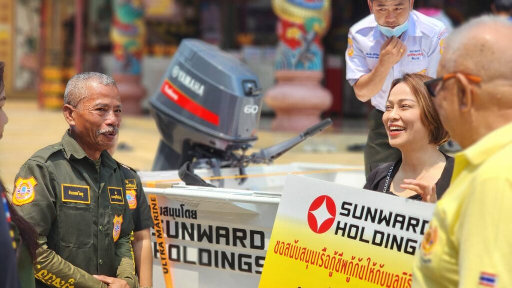 ให้การต้อนรับตัวแทน จาก บริษัท SUNWARD HOLDINGS Co., Ltd.,JAPAN SUNWARD HOLDINGS Co., Ltd., JAPAN ได้นำเรือกู้ภัย พร้อมเครื่องยนตร์ แบบ60 แรงและ เทรลเลอร์ ลากเรือมามอบให้กับ มูลนิธิร่วมกตัญญ ซึ่งมี Ms.WANNA SEWAMAT ตำแหน่ง Director ของบริษัทดังกล่าวเป็นผู้แทนในการมอบ