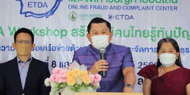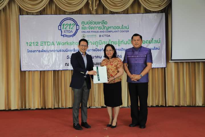 วันที่ 8 มีนาคม 2566 ที่.โรงแรมโอทู อำเภอเมืองลพบุรี จังหวัดลพบุรี นายปรัชญา เปปะตัง รองผู้ว่าราชการจังหวัดลพบุรี เป็นประธานเปิดการอบรม "1212 ETDA สร้างภูมิคนไทยรู้ทันปัญหาออนไลน์" โดยมี นางมณฑา เอี่ยมวิจารณ์ สถิติจังหวัดลพบุรี พร้อมด้วย นายมีธรรม ณ ระนอง รองผู้อำนวยการสำนักงานพัฒนาธุรกรรมทางอิเล็กทรอนิกส์ หัวหน้าส่วนราชการ เจ้าหน้าที่ และนักเรียนนักศึกษา จำนวน 200 คนเข้าร่วมกิจกรรม ทั้งนี้สำนักงานพัฒนาธุรกรรมทางอิเล็กทรอนิกส์ หรือ สพธอ. ภายใต้สังกัดกระทรวงดิจิทัลเพื่อเศรษฐกิจและสังคม ได้รับมอบหมายดำเนินงานศูนย์ช่วยเหลือและจัดการปัญหาออนไลน์ (1212 ETDA) ร่วมกับหน่วยงานพันธมิตรที่เกี่ยวข้อง จัดกิจกรรมดังกล่าวขึ้น เพื่อให้ความรู้ความเข้าใจในการทำธุรกรรมออนไลน์อย่างปลอดภัยในรูปแบบที่เข้าใจง่าย สร้างความตระหนักรู้ขยายไปตามภูมิภาคต่างๆ ทั่วประเทศ กว่า10 จังหวัดให้กับหน่วยงาน เครือข่าย และประชาชนทั่วไป โดยดำเนินงานร่วมกับหน่วยงานพันธมิตร และขยายหน่วยงานความร่วมมือเครือข่ายด้านการป้องกันการรับเรื่องร้องเรียน ทั่วทุกภูมิภาค เพื่อป้องกันปัญหาภัยออนไลน์ทุกภาคส่วน รวมทั้งสร้างความเชื่อมั่นการรับเรื่องร้องเรียน และช่วยแก้ปัญหาภัยออนไลน์