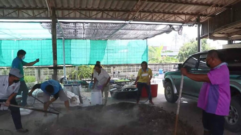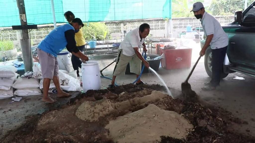 นางสาวชินภา ดวงศรี เจ้าพนักงานการเกษตรชำนาญงาน พร้อมเจ้าหน้าที่สถานีพัฒนาที่ดินสิงห์บุรี ถ่ายทอดองค์ความรู้ด้านการผลิตและการใช้ปุ๋ยอินทรีย์คุณภาพสูง ให้กับสมาชิกโครงการพัฒนากลุ่มที่เข้มแข็งส่งเสริมการใช้สารอินทรีย์ลดการใช้สารเคมี ประจำปีงบประมาณ พ.ศ.2566 ในพื้นที่ ตำบลบ้านหม้อ พร้อมสนับสนุนปัจจัยการผลิต เพื่อส่งเสริมให้เกษตรกรมีความรู้ ความเข้าใจ และสามารถผลิตปุ๋ยอินทรีย์คุณภาพสูงไว้ใช้เอง บรรเทาปัญหาปุ๋ยราคาแพง ช่วยลดต้นทุนการผลิต ณ ศูนย์เรียนรู้เศรษฐกิจพอเพียงบ้านหม้อ หมู่ 5 อำพรหมบุรี จังหวัดสิงห์บุรี โดยมีนายอนุวัฒน์ ธนกิจการค้า กำนันบ้านหม้อหมู่ 5 พร้อมสมาชิกจำนวน 10 กลุ่ม ร่วมทำกิจกรรมทำปุ๋ยอินทรีย์คุณภาพสูง ทดแทนการใช้ปุ๋ยเคมี จากน้ำหมักชีวภาพ ปุ๋ยชีวภาพ สารป้องกันแมลงศัตรูพืช และจุลินทรีย์ควบคุมโรคพืช สามารถนำไปใช้ในการปลูกพืชต่างๆ ทำให้ลดการใช้ปุ๋ยเคมี และสมาชิกในกลุ่มนำความรู้ไปเผยแพร่ให้ชุมชนต่อไป นำไปสู่การถ่ายทอดถอดความรู้ให้เกษตรกรไปใช้ได้อย่างยั่งยืน