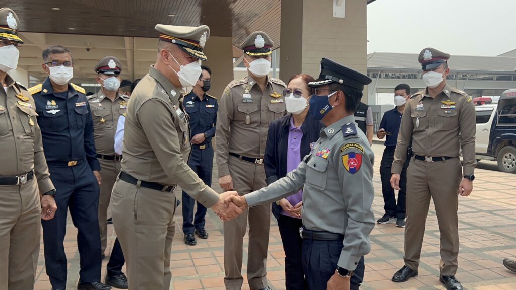 พล.ต.ท.ปิยะ ต๊ะวิชัย ผบช.ภ.5 พร้อมด้วย พล.ต.ต.ธนธัช น้อยนาค รอง ผบช.ภ.5, พ.ต.อ.พงษ์สวัสดิ์ ไชยบาล รอง ผบก.ภ.จว.เชียงราย, นายธันวา ผุดผ่อง นักวิเคราะห์นโยบายและแผนเชี่ยวชาญ สำนักงาน ปปส.ภาค 5 ได้รับตัวผู้ต้องหาคดียาเสพติดรายใหญ่ที่หลบหนีหมายจับ จากเจ้าหน้าที่ฝ่ายเมียนมา ณ สะพานมิตรภาพแห่งที่ 2 อ.แม่สาย จ.เชียงราย