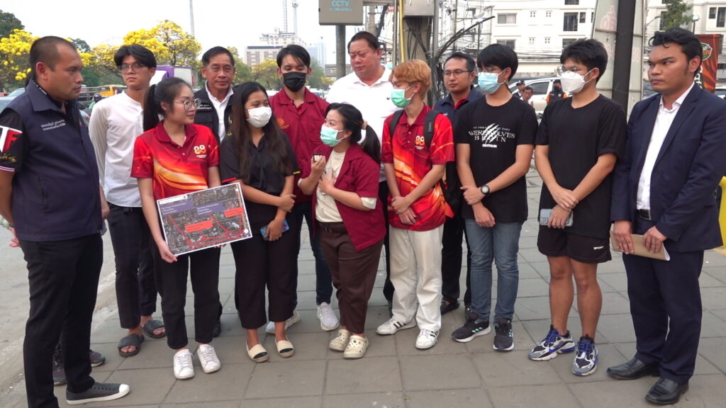 นายยุทธศักดิ์ ชูประเสริฐ (จ่ายุทธ) ผู้ประสงค์ลงสมัครรับเลือกตั้ง ส.ส.พรรคเพื่อไทย กล่าวว่า จากอดีตที่มีตำแหน่งที่ปรึกษาพิเศษนายก อบจ. ปทุมธานีก่อนจะลาออกมาเพื่อเล่นการเมืองใหญ่ ซึ้งขณะนั้นตนเองได้รับการประสานจากองค์การนักศึกษามหาวิทยาลัยธรรมศาสตร์ ศูนย์รังสิต ถึงความเดือดร้อนเรื่องคุณภาพชีวิตและอุบัติเหตุที่ทำให้มีการสูญเสีย จึงได้ลงพื้นที่มาสำรวจก่อนแล้วจึงได้ดำเนินการตรวจสอบร่วมกับ พล.ต.ท.คำรณวิทย์ ธูปกระจ่าง นายก อบจ.ปทุมธานี และ ร.ต.อ.ดร.ตรีลุพธ์ ธูปกระจ่าง นายกเทศมนตรีนครรังสิต ซึ่งเป็นศิษย์เก่า พบว่าถนนเส้นทางนี้มีปัญหามากมาย เมื่อท่านนายกแจ๊สได้รับทราบปัญหาจึงมีการดำเนินแก้ไขปัญหาและประสานจนมีสภาพที่ดีและเรียบร้อยขึ้น ส่วนจะดำเนินการให้สำเร็จ 100 เปอร์เซ็นต์นั่นคาดว่าจะมีการดำเนินการในวันที่ 17 มีนาคมนี้ ขอขอบคุณท่านนายก อบจ.ปทุมธานี นายกเทศมนตรีนครรังสิต นายกเทศบาลเมืองท่าโขลง ที่จะร่วมกับนักศึกษา เป็นมิติที่ดีที่เกิดขึ้นในจังวหัดปทุมธานีเรา ทุกฝ่ายต้องไปด้วยกัน