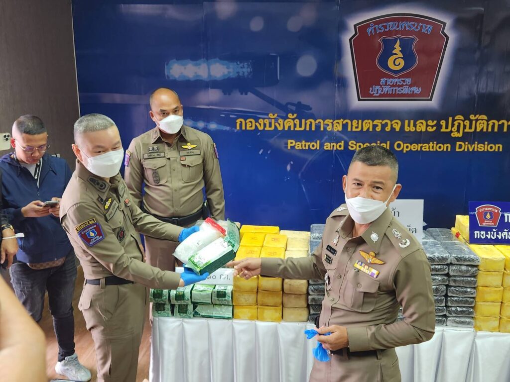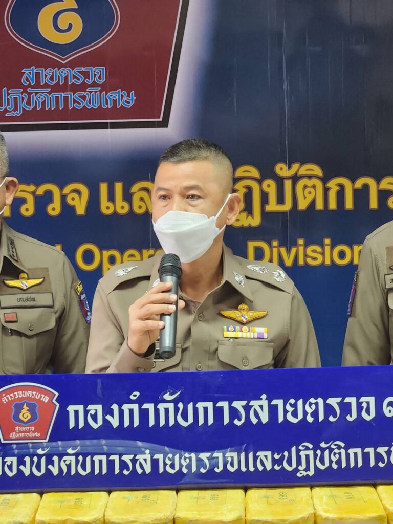 วันที่ 9 มี.ค.66 เวลา 11.00 น. ณ ห้องประชุมชั้น 1 บก.สปพ. : พล.ต.ต.สำเริง สวนทอง รอง ผบช.น., พล.ต.ต.ภานพ วรธนัชชากุล ผบก.สปพ. พ.ต.อ.ประสงค์ อานมณี,พ.ต.อ.ชัยกฤต โพธิ์อ๊ะ,พ.ต.อ.ทิวา โสภาเจริญ,พ.ต.อ.โรจนินทร์ ทองใบ,พ.ต.อ.พิทักษ์ สุทธิกุล,พ.ต.อ.วรศักดิ์ พิสิษฐบรรณการ,พ.ต.อ.เด่นหล้า รัตนกิจ รอง ผบก.สปพ.,พ.ต.อ.วสันต์ ธวัชชัยวิรุตษ์ ผกก.สายตรวจ,พ.ต.ท.โชติช่วง รัศมี,พ.ต.ท.คงศักดิ์ ศรีโหร,พ.ต.ท.อธิบดี เสริมสุข,พ.ต.ท.วสุเทพ ใจอินทร์ รอง ผกก.สายตรวจ,พ.ต.ท.เชษฐพร บัวจันทร์ สว.งานสายตรวจ 2 และเจ้าหน้าที่ตำรวจ กก.สายตรวจ บก.สปพ. ร่วมแถลงข่าว กรณีตรวจยึดยาเสพติดให้โทษปนะเภท 1 (ยาบ้า) จำนวน 2,490,100 เม็ด,วัตถุออกฤทธิ์ต่อจิตและประสาทประเภท 2 (คีตามีน) รวมน้ำหนักประมาณ 10 กิโลกรัม,อาวุธปืนพร้อมเครื่องกระสุนจำนวนหนึ่ง