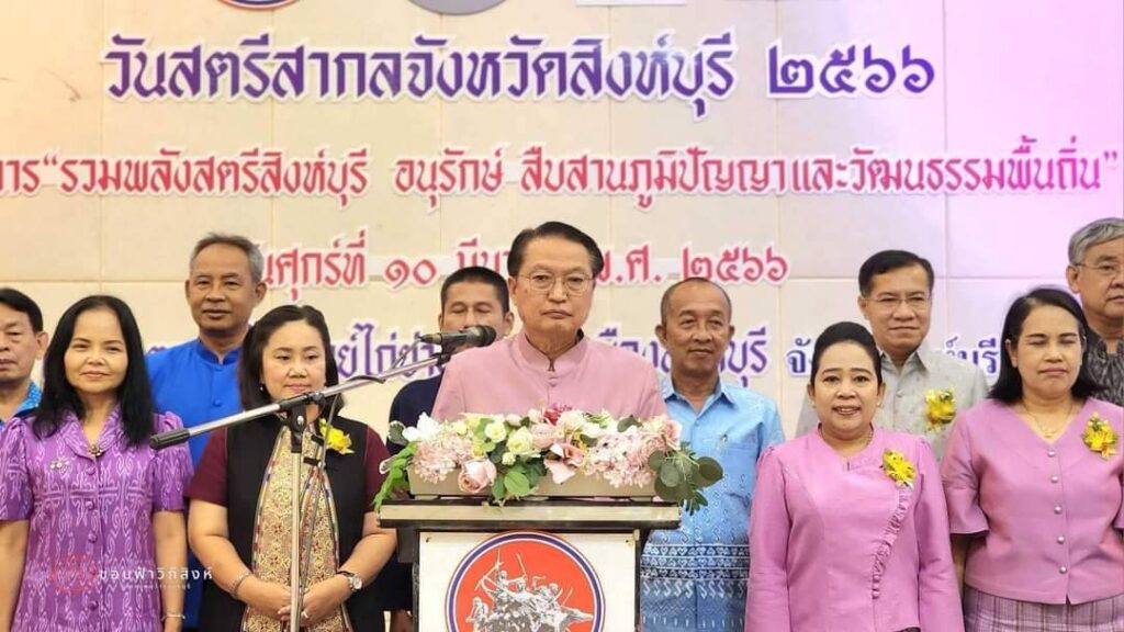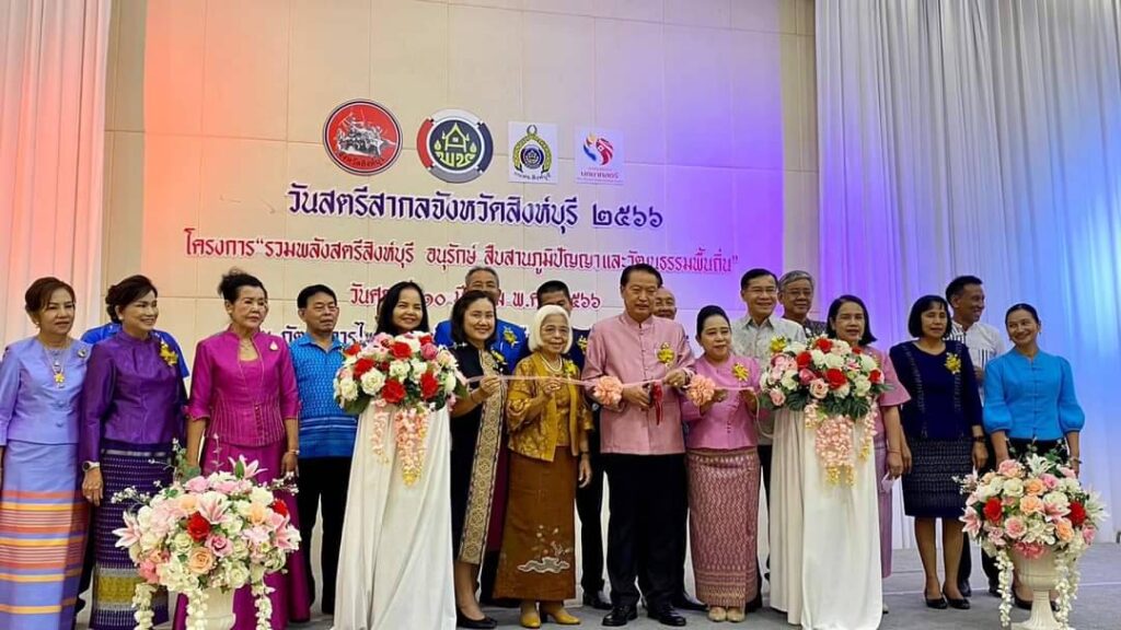 วันที่ 10 มีนาคม 2566 เวลา 10.00 น. นายสุพจน์ ยศสิงห์คำ ผู้ว่าราชการจังหวัดสิงห์บุรี/นายกเหล่ากาชาดจังหวัดสิงห์บุรี มอบหมายให้ นายสัมฤทธิ์ กองเงิน รองผู้ว่าราชการจังหวัดสิงห์บุรี เป็นประธานในพิธีเปิด “รวมพลังสตรีจังหวัดสิงห์บุรี อนุรักษ์ สืบสานภูมิปัญญาและวัฒนธรรมพื้นถิ่น ประจำปี 2566″นางวลัยวรรณ สุทธิโพธิ์ ประธานคณะกรรมการพัฒนาสตรีจังหวัดสิงห์บุรี กล่าวรายงาน โดยมีนางจิราภรณ์ กองเงิน- นางเลียม ฉิมพันธ์ -นางสาวนัยนา ศรีเร รองนายกเหล่ากาชาดจังหวัดสิงห์บุรี นายปรีชา ดิลกพรเมธี ปลัดจังหวัดสิงห์บุรี/เลขานุการเหล่ากาชาดจังหวัดสิงห์บุรี นางพรรณี ศักดิ์ดามพ์นุสนธิ์ กรรมการเหล่ากาชาดจังหวัดสิงห์บุรี -นาง อมราพร ชีพสมุทร์ เกษตรและสหกรณ์สิงห์บุรี-นายปัทพงศ์ สารบรรณ์ เกษตรจังหวัดสิงห์บุรี-นายธนยศ นงบาง ปศุสัตว์จังหวัดสิงห์บุรี-นายภาณุวัฒน์ กรัณย์รัชต์ธร สถิติจังหวัดสิงห์บุรี-นายอำพร ศักดิ์เศรษฐ ประมงจังหวัดสิงห์บุรี-นายประสิทธิ์ พุ่มไม้ชัยพฤกษ์ วัฒนธรรมจังหวัดสิงห์บุรี-นายสานนท์ เพ็ญแสง ท่องเที่ยวและกีฬาจังหวัดสิงห์บุรี นายปัญญา ใช้เฮ็ง นายอำเภอเมืองสิงห์บุรี นายถวิล ยี่สุ้นแสง พัฒนาการจังหวัดสิงห์บุรี – หัวหน้าส่วนราชการ และคณะกรรมการพัฒนาสตรีอำเภอ/จังหวัดสิงห์บุรี ร่วมเป็นเกียรติในพิธี ณ ภัตตาคารไพบูลย์ไก่ย่าง ตำบลบางมัญ อำเภอเมืองสิงห์บุรี จังหวัดสิงห์บุรี