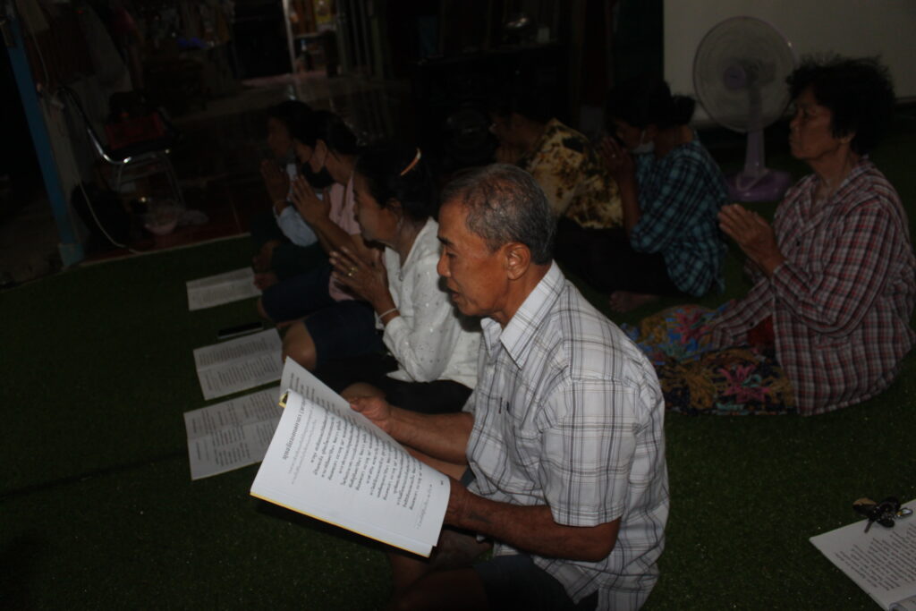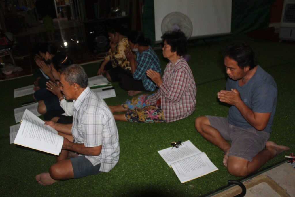 สวดมนต์ทำวัตรเย็น เพื่อเสริมบารมี จิตใจสงบ ได้มีศิษย์ยานุศิษย์ และประชาชนทั่วไปเข้าร่วมอย่างคับคั่ง เพราะเป็นเสริมบารมี