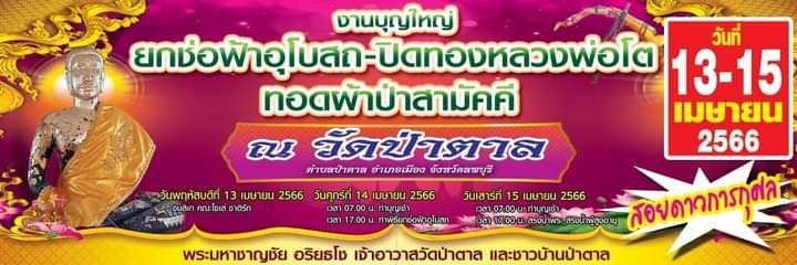 ขอเชิญเที่ยวงานบุญใหญ่ ยกช่อฟ้าอุโบสถ-ปิดทองหลวงพ่อโต-ทอดผ้าป่าสามัคคี-สอยดาวมหากุศล ณ.วัดป่าตาล ต.ป่าตาล อ.เมือง จ.ลพบุรี