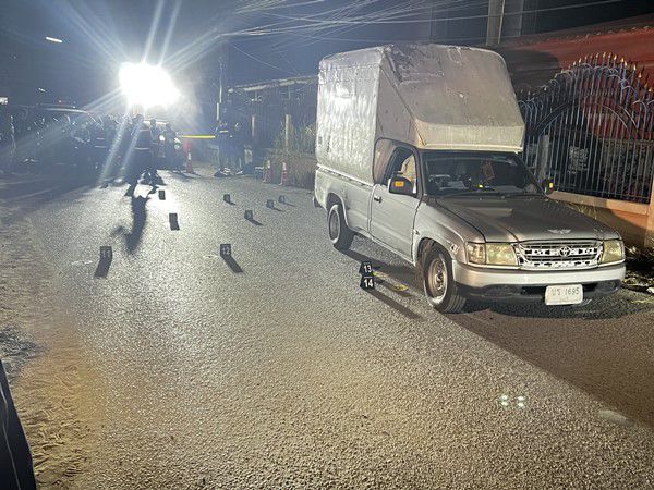 รัวยิงไม่ยั้ง กลางซอยมืด หนุ่มใหญ่ดับคารถกระบะ ปมสังหารยังเป็นปริศนา ปลอกกระสุนปืน 9 มม. เกลื่อนพื้น พยานเห็นจอดคุยกับคนขี่รถจักรยานยนต์