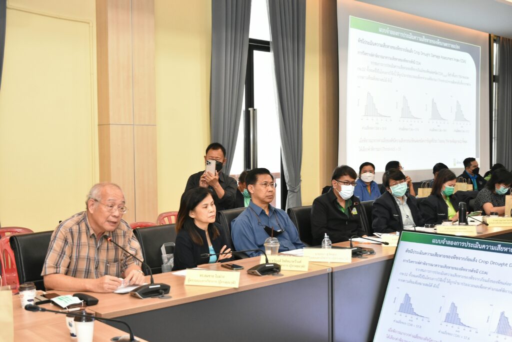 ดร.สมชาย ใบม่วง ผู้ทรงคุณวุฒิ (วช.) กล่าวว่า ปัจจุบันการให้ความช่วยเหลือผู้ประสบภัยแล้ง อาศัยข้อมูลปริมาณน้ำฝนของกรมอุตุนิยมวิทยา ซึ่งมีการรายงานของฝนทิ้งช่วงต่อเนื่องในช่วงฤดูกาลเพาะปลูกพืช ประกาศเป็นพื้นที่ภัยแล้งในระดับจังหวัด และให้เกษตรกรที่ได้รับผลกระทบขึ้นทะเบียนกับกรมส่งเสริมการเกษตร เพื่อขอรับเงินค่าชดเชย โดยจะต้องมีการตรวจสอบยืนยันความเสียหายจากเจ้าหน้าที่ของรัฐก่อนถึงจะสามารถดำเนินการจ่ายค่าชดเชยได้ ทำให้การช่วยเหลือเกษตรกรเกิดความล่าช้าและสินเปลืองกำลังคนในการสำรวจตรวจสอบจำนวนมาก (วช.) จึงได้ให้การสนับสนุน GISTDA ในการดำเนินโครงการ “ประเมินพื้นที่เสี่ยงภัยแล้งและความเสียหายของพืชเกษตรรายแปลง ด้วยเทคโนโลยีภูมิสารสนเทศ” โดยคณะนักวิจัยได้สร้างแบบจำลองการวิเคราะห์และประเมินพื้นที่เสี่ยงภัยแล้ง และความเสียหายของพืชเกษตรรายแปลง แบบอัตโนมัติ และจัดทำเป็นแพลตฟอร์มเพื่อสนับสนุนการตัดสินใจในการช่วยเหลือเกษตรกรผู้ประสบภัยแล้ง รวมทั้ง การขับเคลื่อน ติดตาม ประเมินผลลัพธ์และผลตอบแทนทางสังคมให้กับหน่วยงานระดับนโยบาย อาทิ กระทรวงเกษตรและสหกรณ์ กระทรวงมหาดไทย กรมส่งเสริมการเกษตร กรมชลประทาน กรมอุตุนิยมวิทยา เป็นต้น โดยคณะผู้ตรวจสอบทางวิชาการของโครงการวิจัยได้ลงพื้นที่จังหวัดอุทัยธานีเพื่อดูผลการนำผลงานวิจัยมาใช้ประโยชน์ เพื่อให้รู้ถึงปัญหาของการใช้งานของแพลตฟอร์ม เมื่อนำมาใช้งานจริง