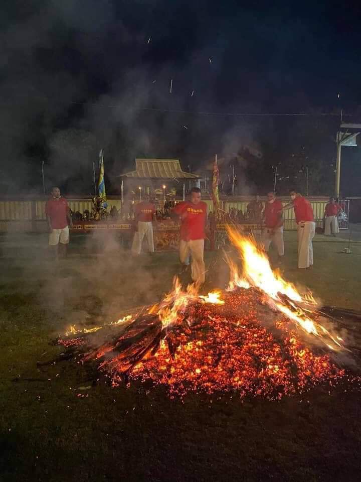 ในช่วงเย็น เชิญชมการแสดงโชว์ ของคณะสิงโต มังกรทอง และพิธีลุยไฟ ณ สนามโรงเรียนพิบูลวิทยาลัย เริ่มเวลาประมาณ 18.00 น. เป็นต้นไป