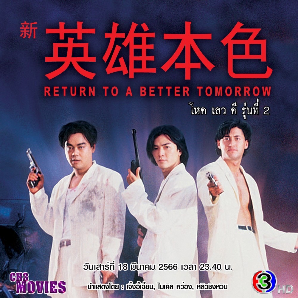ส่วน “แชนแนลทรีมูฟวี่ส์” สัปดาห์นี้ขอนำเสนอภาพยนตร์ “โหด เลว ดี รุ่นที่ 2 (Return To Better Tomorrow)” นำแสดงโดย : เจิ้งอี้เจี้ยน, ไมเคิล หว่อง, หลิวชิงหวิน เรื่องราวความบู๊ของ “โหด เลว ดี รุ่น 2” ได้เริ่มต้นขึ้นเมื่อ ฉั่น เป็นหนึ่งในหัวหน้าของไตรภาคี แต่กลับถูก เว่ย หลอกใช้จนต้องตกระกำลำบาก จนกระทั่งทำให้ กุ้งใหญ่ ผู้เป็นลูกน้องก้าวขึ้นสู่อำนาจแทน ในขณะที่ ซิว ผู้ซึ่งเป็นภรรยาของฉั่นก็ถูกเว่ยทำร้ายเช่นกันจนถึงกับเสียผู้เสียคน ด้วยความโกรธแค้น ฉั่น จึงหวนกลับมาเล่าเรื่องทุกอย่างที่เกิดขึ้นให้กับกุ้งใหญ่ฟัง เพื่อหวังที่จะให้กุ้งใหญ่ล้างแค้นให้กับตน แต่กุ้งใหญ่กลับทำพลาดจนนำมาซึ่งความตาย ท้ายที่สุดแล้วฉั่น จะสามารถกู้ศักดิ์ศรีของตนคืนมาได้หรือไม่ ติดตาม “โหด เลว ดี รุ่นที่ 2 (Return To Better Tomorrow)” ได้ในวันเสาร์ที่ 18 มีนาคม 2566 เวลา 23.40 น.