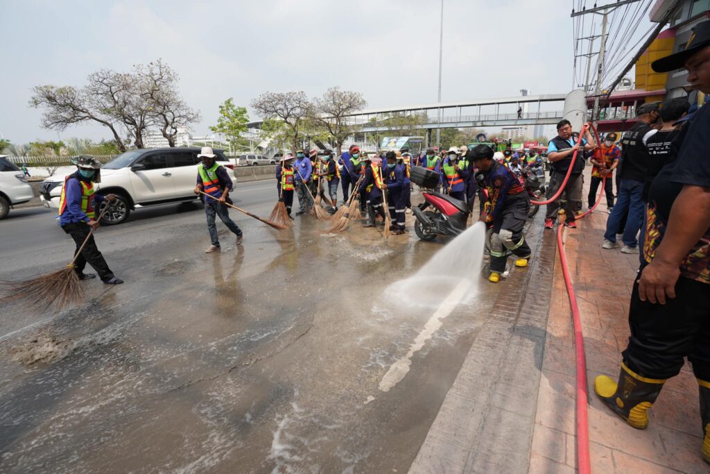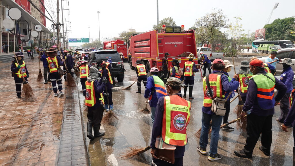 นายธานี ใจแคล้ว รองนายกเทศมนตรีเมืองท่าโขลง กล่าวว่า ทางเทศบาลนได้รับการประสานจากนายยุทธศักดิ์ ชูประเสริฐ (จ่ายุทธ) อดีตที่ปรึกษาพิเศษนายก อบจ.ปทุมธานี และว่าที่ผู้สมัครรับเลือกตั้ง ส.ส.พรรคเพื่อไทย และน้องนักศึกษามหาวิทยาลัยธรรมศาสตร์ ศูนย์รังสิต โดยทางเทศบาลมีเจ้าหน้าที่จำนวน 70 ท่าน มาร่วมทำความสะอาด และ รถดับเพลิง รถขยะ และเจ้าหน้าที่กวาดถนนอีก 30 คน ในส่วนของเทศบาลท่าโขลเราเริ่มทำตั้งแต่ปั๊มแก๊สจนถึงถนนเชื่องเชียงรากและถนนพหลโยธิน