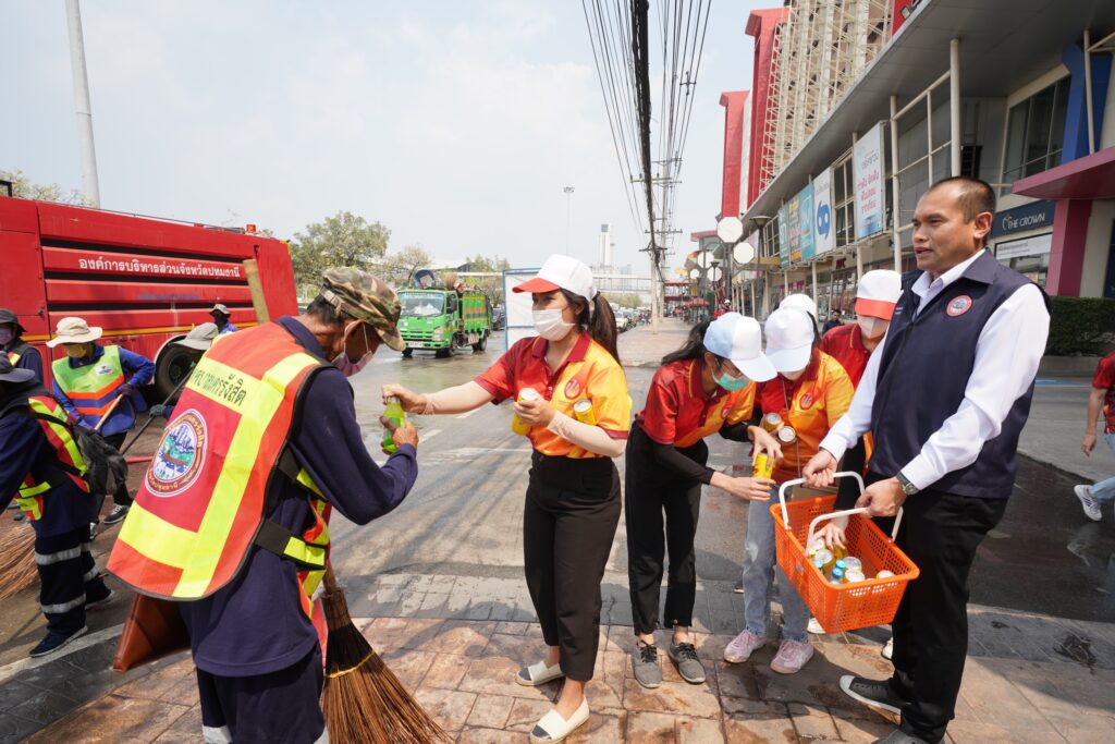 โดย องค์การบริหารส่วนจังหวัดปทุมธานี นำโดย พล.ต.ท.คำรณวิทย์ ธูปกระจ่าง นายกองค์การบริหารส่วนจังหวัดปทุมธานี พร้อมด้วย พล.อ.อ.สักก์สกล แสงสุรัตน์วดี ที่ปรึกษานายกอบจ.ปทุมธานี ได้สนับสนุนนำเจ้าหน้าที่กองป้องกันและบรรเทาสาธารณภัย และเจ้าหน้ากองสาธารณสุข อบจ.ปทุมธานี จำนวน 16 คน พร้อมสนับสนุนรถน้ำดับเพลิงจำนวน 1 คัน และรถละอองน้ำพ่นจำนวน 2 คัน ในส่วนของเทศบาลนครรังสิต นำโดย ร้อยตำรวจเอก ดร.ตรีลุพธ์ ธูปกระจ่าง นายกเทศมนตรีนครรังสิต ได้สนับสนุนเจ้าหน้าที่ฝ่ายสาธารณสุข และฝ่ายป้องกันและบรรเทาสาธารณภัย จำนวน 54 คน พร้อมรถน้ำดับเพลิงจำนวน 1 คัน และรถขยะจำนวน 3 คัน และเทศบาลเมืองท่าโขลง ได้นำเจ้าหน้าที่ฝ่ายสาธารณสุข จำนวน 70 คน พร้อมรถน้ำดับเพลิงจำนวน 2 คัน และรถขยะจำนวน 4 คัน เพื่อร่วมกันทำความสะอาด ปรับปรุงแก้ไข กำจัดสิ่งปฏิกูลบนท้องถนนต่อไปครับ