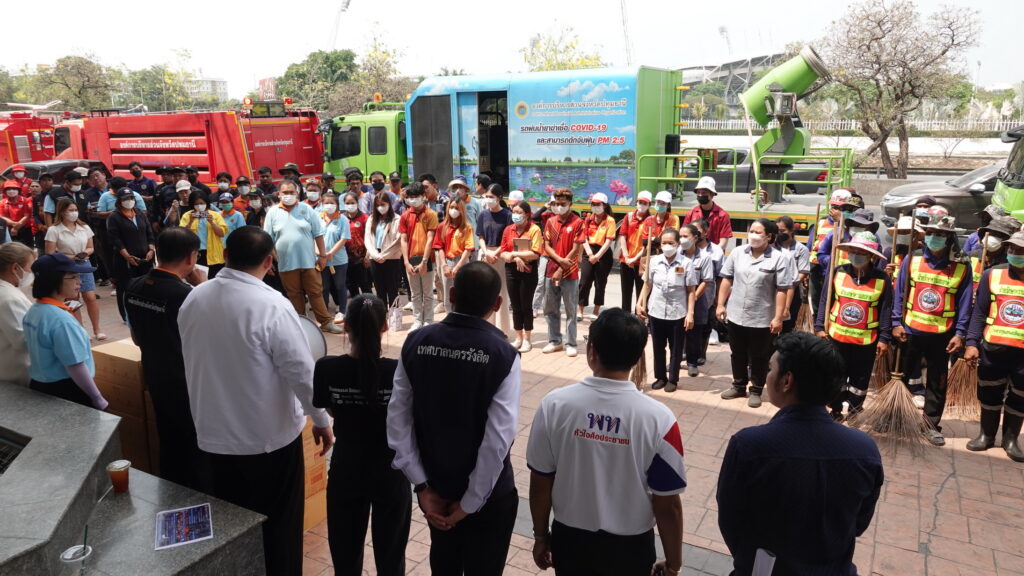 ด้าน พล.ต.ท.คำรณวิทย์ ธูปกระจ่าง นายก อบจ.ปทุมธานี กล่าวว่า ขอบคุณน้อง ๆ นักศึกษาของมหาวิทยาลัยธรรมศาสตร์ ศูนย์รังสิต ที่เห็นความสำคัญของพี่น้องประชาชนทั้งหมด ได้ประสานงานหลาย ๆ หน่วยงาน จึงได้จัดให้มีกิจกรรมในวันนี้เกิดขึ้น โดยมีจ่ายุทธ (ยุทธศักดิ์ ชูประเสริฐ) เป็นผู้ประสานงานทุกหน่วยทั้ง อบจ. เทศบาลนครรังสิต เทศบาลท่าโขลง รวมถึงนักศึกษาที่ออกมาช่วยกันล้างถนน และฉีดพ่นป้องกันฝุ่นละออง PM2.5 นอกจากนี้ยังแก้ไขในส่วนที่มืดเป็นอันตรายต่อนักศึกษาและประชาชนที่ข้ามสะพานลอย โดยการจัดไฟส่องสว่างจากแผงโซล่าเซลล์มาติดตั้ง และขอให้น้องๆนักศึกษาทำกิจกรรมนี้อย่างต่อเนื่อง หากหยุดปัญหาต่าง ๆ ก็จะกลับมาอีก