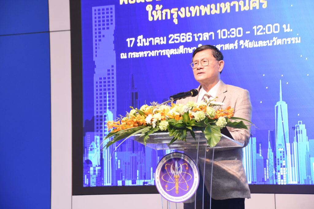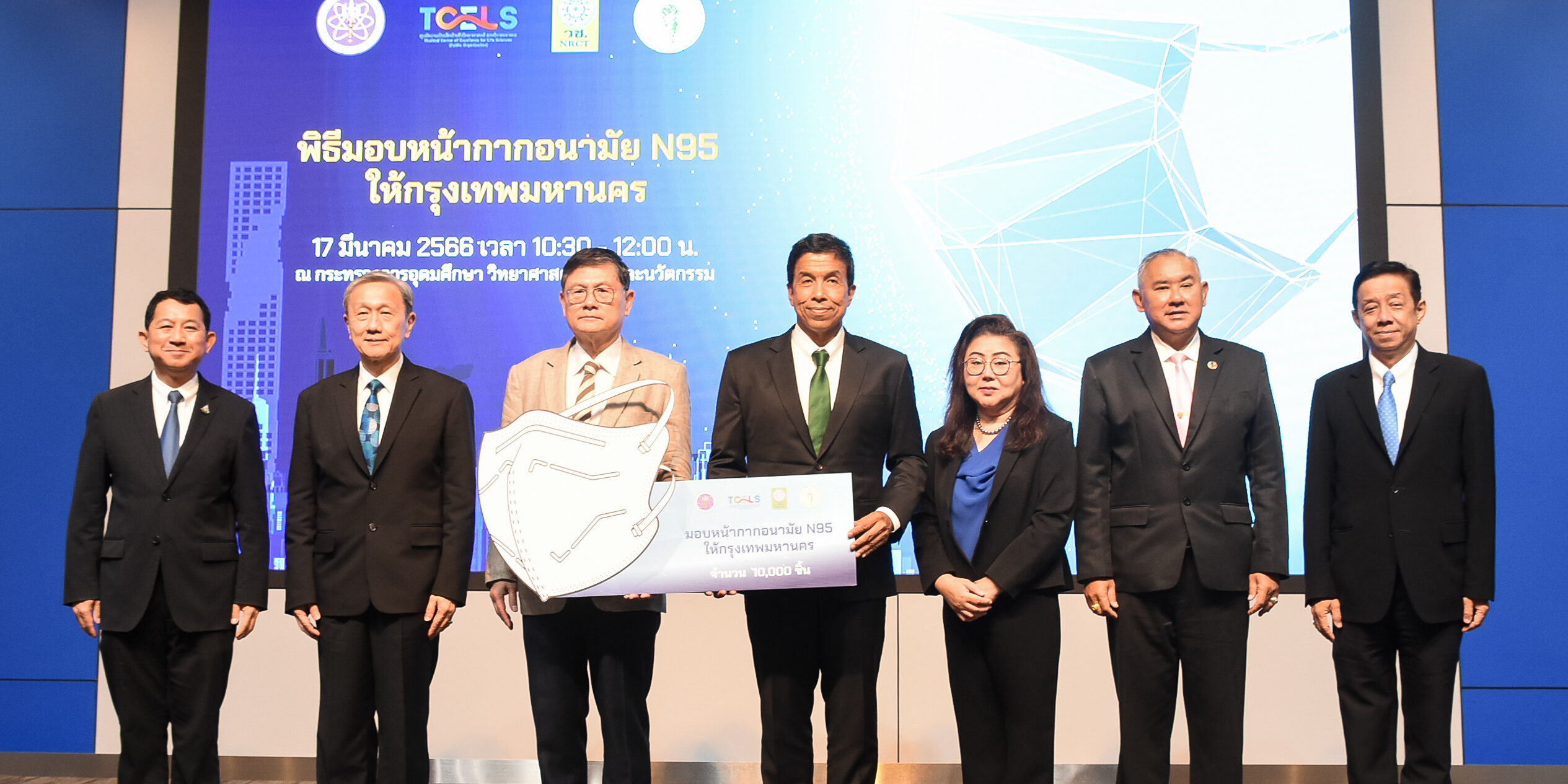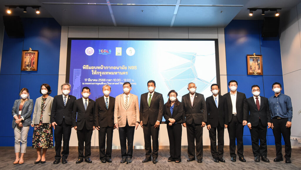 วันที่ 17 มีนาคม 2566 : ศาสตราจารย์พิเศษ ดร.เอนก เหล่าธรรมทัศน์ รัฐมนตรีว่าการกระทรวงการอุดมศึกษา วิทยาศาสตร์ วิจัยและนวัตกรรม (อว.) ให้เกียรติเป็นประธานพิธีมอบหน้ากากอนามัยชนิด N95 ให้กรุงเทพมหานคร โดยมี รองศาสตราจารย์ ดร.ชัชชาติ สิทธิพันธุ์ ผู้ว่าราชการกรุงเทพมหานคร รับมอบหน้ากากอนามัยชนิด N95 จำนวน 10,000 ชิ้น เพื่อนำไปใช้ในกิจกรรมของกรุงเทพมหานคร ในการป้องกันปัญหาฝุ่นละอองขนาดเล็ก PM 2.5 และโรคระบาดโควิด-19 พร้อมนี้ นายสัมพันธ์ เย็นสำราญ ที่ปรึกษารัฐมนตรีว่าการกระทรวง (อว.),ศาสตราจารย์ ดร.นายแพทย์สิริฤกษ์ ทรงศิวิไล ปลัดกระทรวง (อว.),ศาสตราจารย์ ดร.นายแพทย์ประสิทธิ์ วัฒนาภา ประธานกรรมการศูนย์ความเป็นเลิศด้านชีววิทยาศาสตร์ (ศลช.),ดร.จิตต์พร ธรรมจินดา ผู้อำนวยการศูนย์ความเป็นเลิศด้านชีววิทยาศาสตร์ (องค์การมหาชน) พร้อมด้วยผู้บริหารหน่วยงาน (อว.) โดย ดร.วิภารัตน์ ดีอ่อง ผู้อำนวยการสำนักงานการวิจัยแห่งชาติ (วช.) ได้มอบหมายให้นายสมปรารถนา สุขทวี รองผู้อำนวยการสำนักงานการวิจัยแห่งชาติ ร่วมพิธีส่งมอบฯ ครั้งนี้ด้วย ณ ห้องแถลงข่าว ชั้น 1 อาคารพระจอมเกล้า กระทรวง (อว.) ถนนพระราม 6 กรุงเทพฯ