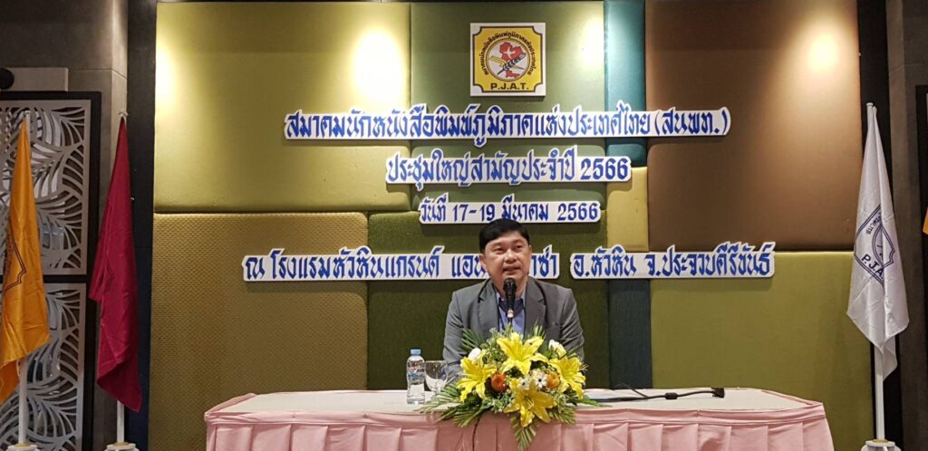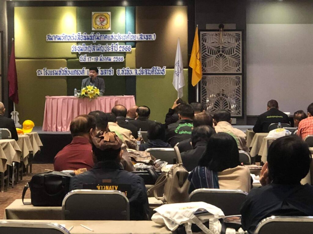 วันที่ 18 มีนาคม 2566 เวลา 9.00 น. จัดประชุมใหญ่สามัญประจำปี 2566 และเลือกตั้งคณะกรรมการบริหารสมาคมชุดใหม่ ณ ห้องสมอเรียงโรงแรมหัวหินแกรนด์ แอนด์ พลาซ่า อำเภอหัวหิน จังหวัดประจวบคีรีขันธ์ นายกิตติพงษ์ สุภากุลรองผู้ว่าราชการจังหวัดประจวบคีรีขันธ์เป็นประธานพิธีเปิดการประชุมใหญ่ สามัญประจำปี 2566 ของสมาคมนักหนังสือพิมพ์ภูมิภาคแห่งประเทศไทย(สนพท) โดยนายไชยยงค์มณีรุ่งสกุล นายกสมาคมนักหนังสือพิมพ์ภูมิภาคแห่งประเทศไทยกล่าวรายงานถึงความเป็นมาของสมาคมจากนั้นเป็นการมอบทุนการศึกษาให้แก่บุตร/ธิดา ของสมาชิกสมาคมและพิธีมอบโล่ให้กับผู้มีอุปการะคุณแก่สมาคมและผู้สนับสนุนการจัดงานประชุมใหญ่โดยมีสื่อมวลชนจากทั่วประเทศเข้าร่วมประชุมเวลา 10.00 น. ว่าที่ ร้อยตรีกรกฏโอภาส รองผู้อำนวยการนายกการท่องเที่ยวแห่งประเทศไทย(ททท)สำนักงานประจวบคีรีขันธ์ได้บรรยายพิเศษพร้อมแนะนำแหล่งท่องเที่ยวและร้านอาหารขึ้นชื่อของจังหวัดประจวบคีรีขันธ์ นางสาว พรรณทิพย์