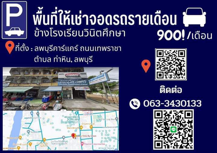ลงพื้นที่มุ่งหน้าไปที่ ตำบลท่าหิน อำเภอเมือง จังหวัดลพบุรี ข้างๆโรงเรียนวินิตศึกษา ตรงข้ามกำแพงวังนารายณ์ราชนิเวศน์ ที่นี่ มีลานจอดรถ บริการรายเดือนราคาถูกและบริการล้างรถที่มีประสบการณ์มากกว่า 20 ปี
