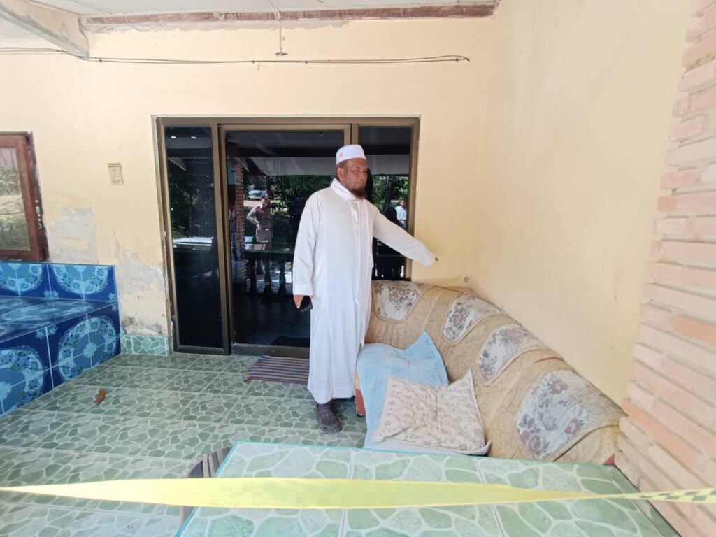 นางสาวสุนิสา สามารถ อายุ 35 ปี กล่าวว่า ตกใจและได้ยินเสียงกระสุนปืนดัง จึงพยามอย่าให้คนในบ้านออกมา เพราะในบ้านมีลูกเขย มีแม่ มีตนเอง และลูกชายอายุ 3 ขวบ ผู้หญิง อายุ 8 ขวบซึ่งทางลูกสาวตื่นขึ้นมา จึงตั้งสติรีบปลุกทุกคนในบ้าน จากนั้นก็จับลูกทั้ง2 คนพลิกไปมาดูตามร่างกาย เพื่อหวั่นว่าโดยอะไรหรือเปล่า จากนั้นก็ออกมาดูหน้าบ้านตกใจ รอยกระสุนยิงเข้ามาในบ้าน โดยลักษณะบ้านเป็น 2 ชั้น มี 2 ห้องนอนห้องแรกลูกชายนอนกับตนเองและแฟน ส่วนลูกสาวคนโตนอนกับคนยาย ส่วนหน้าบ้านคืนเกิดเหตุไม่ได้มานอน กลับไปนอนในห้อง และนับว่าโชคดีเป็นอย่างมาก เช่นเดียวนางสาฝีหน๊ะ สามารถ อายุ 69 ปี ภรรยาโต๊ะอิหม่าม บอกว่า ทางคุณแม่ออกมาเข้าห้องช่วงประมาณ 04.00 น,.จากนั้นจะเข้าไปนอน และได้ยินเสียงดังเหมือนประทัด ทั้งปังๆๆ ประมาณ 4 ครั้ง ตกใจ ลุกออกมาดูเดินมาหน้าบ้าน เห็นฝุ่นสะเก็ดจึงเปิดไฟเปิดม่าน เห็นรู้กระสุนจึงโทรแจ้ง 191 ทันที และอยากวอนทางตำรวจช่วยตามจับคนร้าย ยันทางบ้านไม่เคยมีเรื่องกับใคร