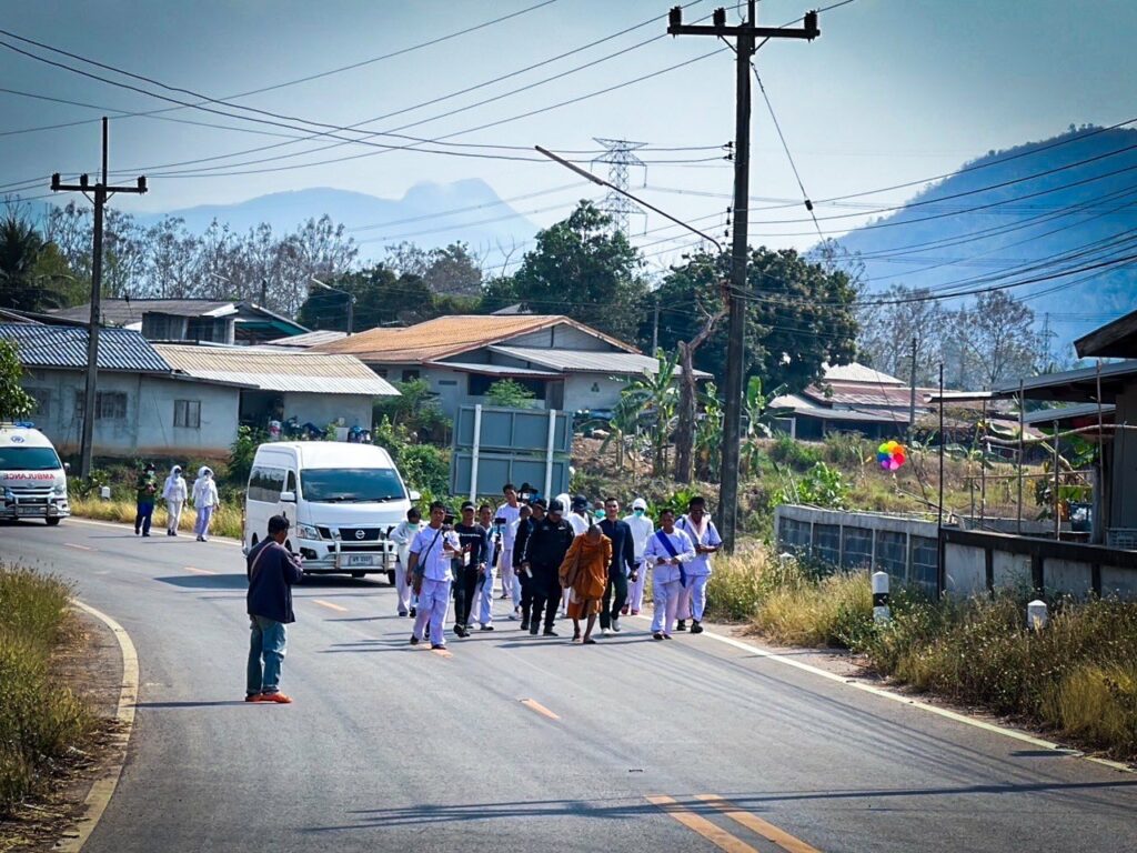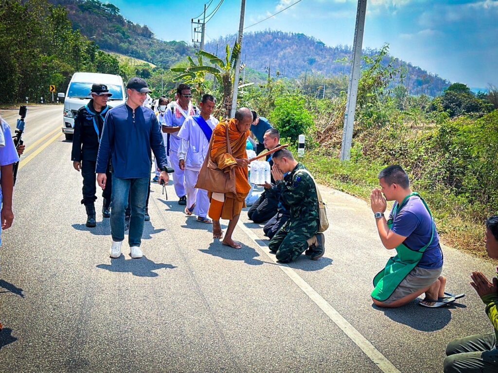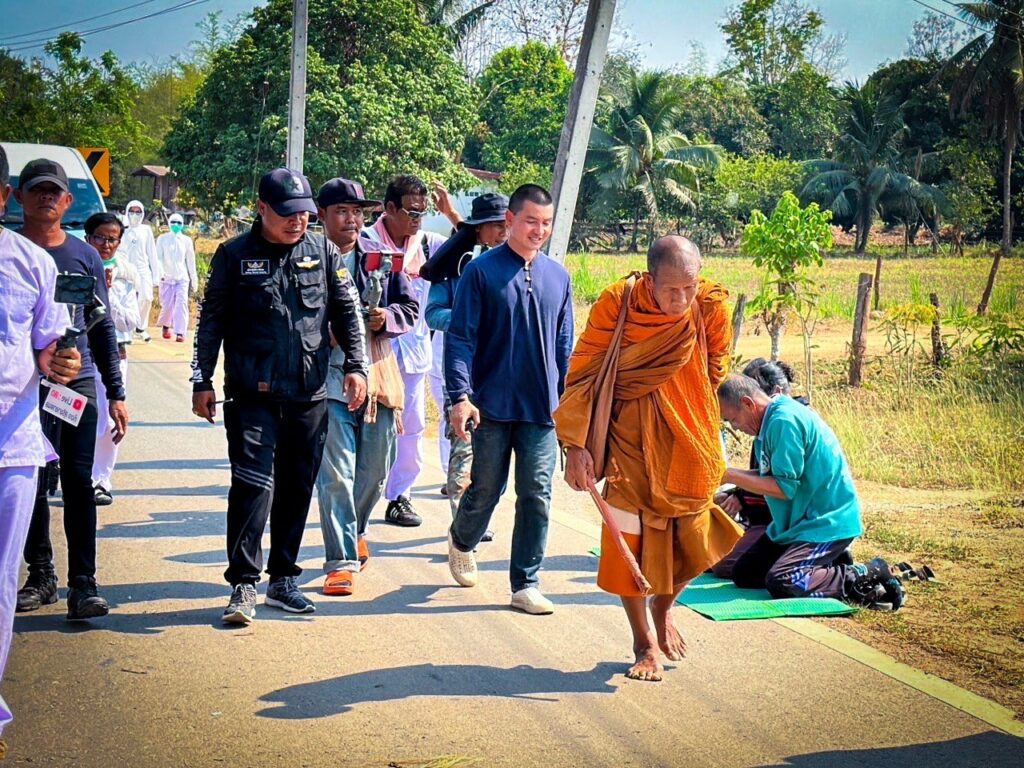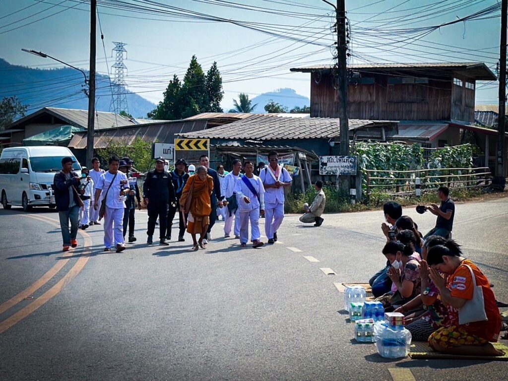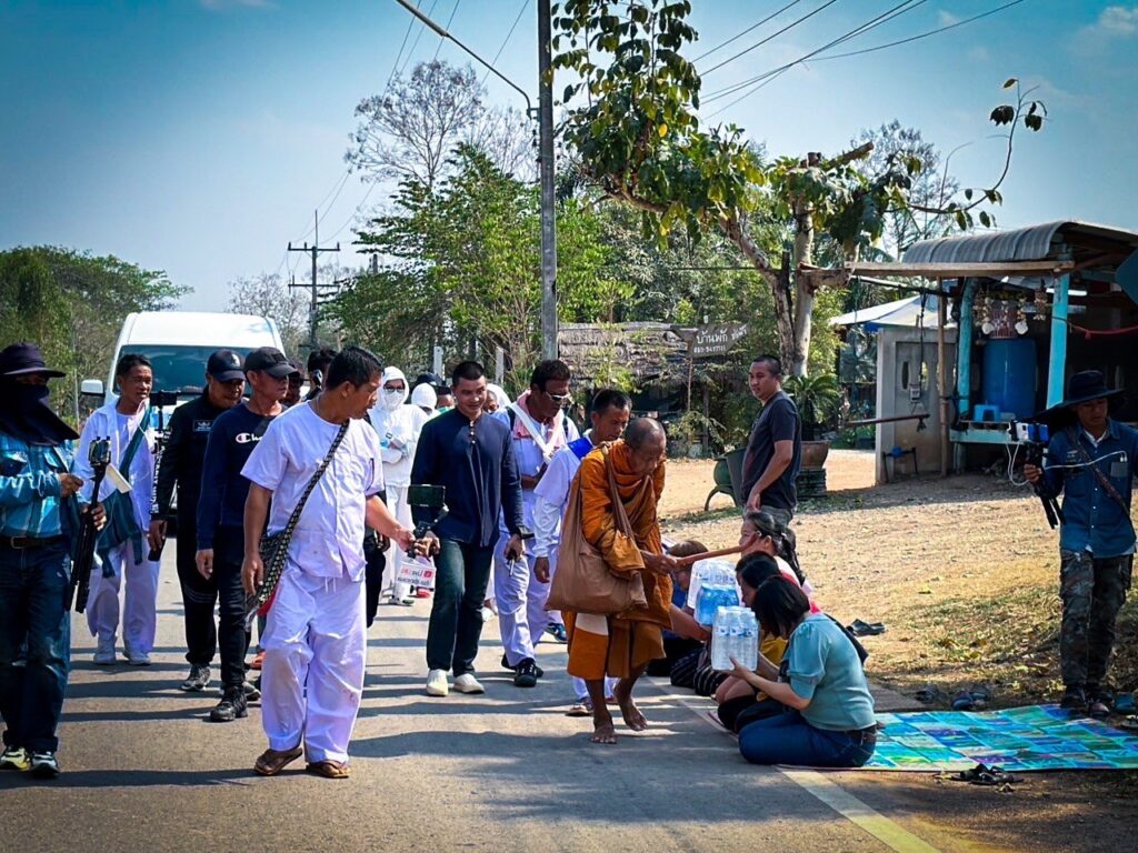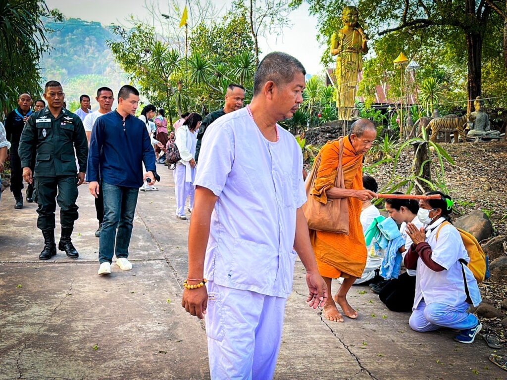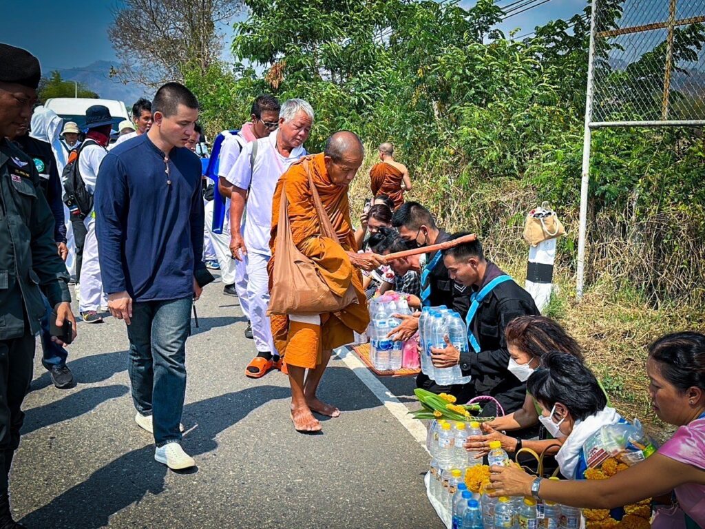 วันที่ 22 มี.ค. 2566 จากกรณี หลวงตาบุญชื่น ปัญญาวุฑโฒ พระสายกรรมฐาน ที่ได้ทำกิจกรรมการเดินธุดงค์ จนเป็นที่รู้จักของคนทั้งประเทศ ซึ่งก่อนหน้านี้ได้ออกเดินธุดงค์จากภาคใต้ เริ่มต้นที่จ.สงขลา เพื่อไปสิ้นสุดที่ จ.นครพนมบ้านเกิด ตามความตั้งใจในการก่อตั้งกองทุน ช่วยโรงพยาบาล ระยะทาง 3415 กิโลเมตร ผ่านเส้นทาง 24 จังหวัด จากมีกระแสข่าวว่ามีอาการอาพาธเจ็บหลัง เนื่องจากการแบกของหนัก และลุกผิดท่างดเดินธุดงค์ชั่วคราวที่สำนักสงฆ์บ้านห้วยผึ้ง อ น้ำปาด อุตรดิตถ์เมื่อวันที่ 8 มี.ค.66 ที่ผ่านมา ปัจจุบันหลวงตาบุญชื่น อาการดีขึ้นและได้เดินจาริกธุดงค์ มุ่งหน้าเข้า จ.เลย โดยปัจจุบันได้เดินจาริกธุดงค์ ถึง อ.ท่าลี่ จ.เลย ตามเส้นทางเรียบแม่น้ำเหืองซึ่งเป็นแม่น้ำกั้นชายแดนประเทศไทย กับ ประเทศเพื่อนบ้าน สปป.ลาว โดยได้รับการอำนวยความสะดวกจากส่วนราชการในพื้นที่จากกองร้อยเฉพาะกิจทหารพรานที่ 2102 หน่วยเฉพาะกิจทหารพรานที่ 21 นำทีมโดย ร้อยโท อาคม คำจุลฬา ผู้บังคับกองร้อยเฉพาะกิจทหารพรานที่ 2102 หน่วยเฉพาะกิจทหารพรานที่ 21 ซึ่งเป็นกำลังป้องกันชายแดนของหน่วยเฉพาะกิจทหารพรานที่ 21 กองกำลังสุรศักดิ์มนตรี และเจ้าหน้าที่ตำรวจตระเวนชายแดนในพื้นที่ให้การดูแลระหว่างการเดินผ่านตามเส้นทางในพื้นที่ อ.ท่าลี่ จ.เลย ซึ่งระหว่างทางจะมีลูกศิษย์ นุ่งชุดขาวคอยเดินนำถือไม้กวาด กวาดถนนนำเอาเศษหินดินทรายออกระหว่างทาง ก่อนที่หลวงตาบุญชื่อจะเดินผ่าน มีลูกศิษย์คอยเดินตามตลอดทาง ระหว่างทางญาติโยมที่ทราบว่าหลวงตาจะเดินผ่านมา จึงได้พากันแห่มานั่งรอริมทางตลาดสาย พร้อมกับนำน้ำดื่ม เสื้อผ้าที่สวมใส มาวางไว้ระหว่าทาง เพื่อให้หลวงตาเยียบเพื่อเป็นสิริมงคล และยังพบอีกว่าเมื่อหลวงตาพบพระที่มา รอกราบท่าน หลวงตาก็จะก้มลงกราบ พร้อมกับสนทนาก่อนที่จะเดินต่อ ซึ่งในวันนี้ 22 มี.ค.66 เวลา 15.00 น. หลวงตาบุญชื่นธุดงค์ถึงวัดอินทาราม ม.7 บ้านปากห้วย ต.หนองผือ อ.ท่าลี่ จ.เลย เวลา 18.00 น.สวดมนต์เย็น และในวันพรุ้งนี้ 23 มี.ค.66 เวลา 04.00 น. ทำวัตรเช้า 06.00 น.ใส่บาตรเช้า 07.30 น.ออกเดินธุดงค์จากวัดไปยังถนนสาย 2115 ผ่านบ้านเพชรโสภณ ผ่านบ้านเมี่ยง ผ่านบ้านท่าลี่ และเข้ารักษาอาการอาพาธ ที่โรงพยาบาลท่าลี่ ประมาณ 1 คืน ก่อนออกเดินธุดงค์ต่อเข้าโคกใหญ่ และสามแยกปากภู ต.เมือง อ.เมือง จ.เลย ต่อไป