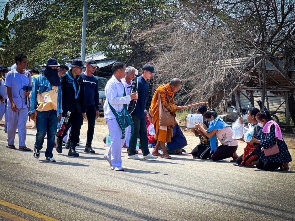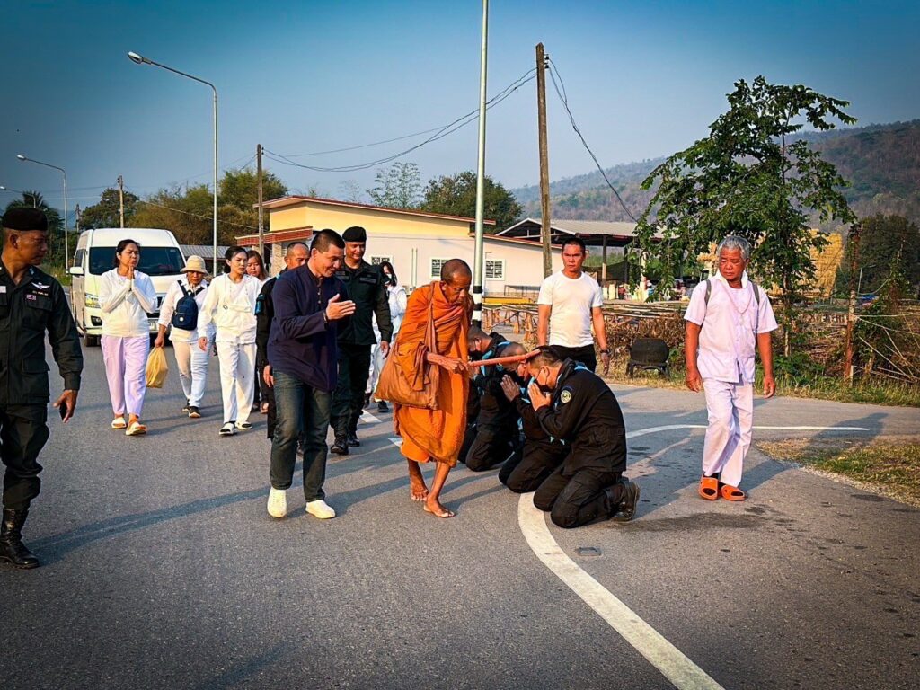ทั้งนี้ หลวงตาบุญชื่น ปัญญาวุฑโฒ อายุ 74 ปี 13 พรรษา เป็นพระธุดงค์สายป่า แห่งที่พักสงฆ์หลวงตาบุญชื่น ต.โพนสวรรค์ อ.โพนสวรรค์ จ.นครพนม และเป็นที่เคารพของสาธุชนทั่วประเทศ เริ่มออกเดินจาริกธุดงค์เท้าเปล่าแสวงบุญโปรดญาติโยมและมุ่งการให้ทาน โดยเริ่มต้นเดินเมื่อวันที่ 19 ต.ค.65 ที่ผ่านมา จากวัดมหัตตมังคลาราม หรือวัดหาดใหญ่ใน อ.หาดใหญ่ จ.สงขลา ขึ้นมา จ.เชียงราย แล้ววกกลับไปภาคอีสาน ปลายทาง จ.นครพนม ซึ่งเป็นบ้านเกิด ผ่าน 24 จังหวัด รวมระยะทาง 3,415 กิโลเมตร ปัจจุบันใช้เวลาเดินจาริกธุดงค์เท้าเปล่าแล้วประมาณ 6 เดือน “เดินจาริกธุดงค์เท้าเปล่าแสวงบุญ” วัตถุประสงค์เพื่อบำเพ็ญเพียรและปฏิบัติธุดงควัตร ตามรอยหลวงปู่มั่นโดยไม่ขอขึ้นรถ และรับถวายเพียงน้ำเปล่า