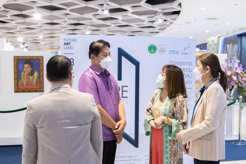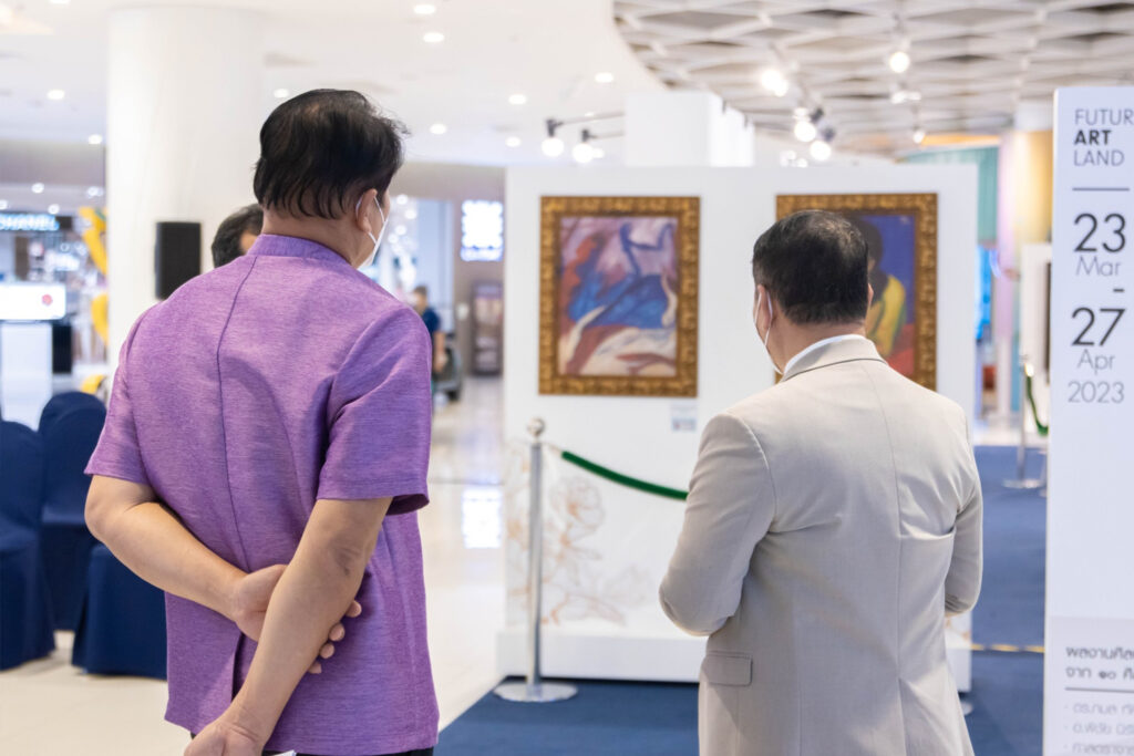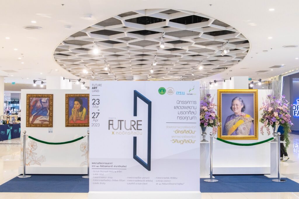 วันที่ 23 มีนาคม 2566 ที่ศูนย์การค้าฟิวเจอร์พาร์คและสเปลล์ ตำบลประชาธิปัตย์ อำเภอธัญบรี จังหวัดปทุมธานี คุณเศกสรร ผุดผาด รักษาการผู้อำนวยการหออัครศิลปิน พร้อมทั้งผู้บริหารศูนย์การค้าฟิวเจอร์พาร์ค คุณณัฐรินทร์ พยุงวงศ์ รองกรรมการผู้จัดการสายการตลาดและพัฒนาธุรกิจ, คุณชนนิกานต์ ไกรธรรมจิตกุล ผู้อำนวยการด้านการตลาด ร่วมเปิดงานนิทรรศการ FUTURE X หออัครศิลปิน จัดแสดงภาพวาดฝีพระหัตถ์ “อัครศิลปิน” และภาพวาดฝีพระหัตถ์ “วิศิษฎศิลปิน” พร้อมกับผลงานศิลปะจาก 10 ศิลปินแห่งชาติ ในสาขาทัศนศิลป์ โดยผลงานถูกสร้างสรรค์ในทุกรูปแบบ ทุกเทคนิค ล้วนเป็นผลงานสร้างสรรค์ที่มีเอกลักษณ์ และหาชมได้ยาก จากศิลปินแห่งชาติ ระหว่างวันที่ 23 มีนาคม 2566 – 27 เมษายน 2566 ชั้น G ฝั่งเซ็นทรัลสเปลล์