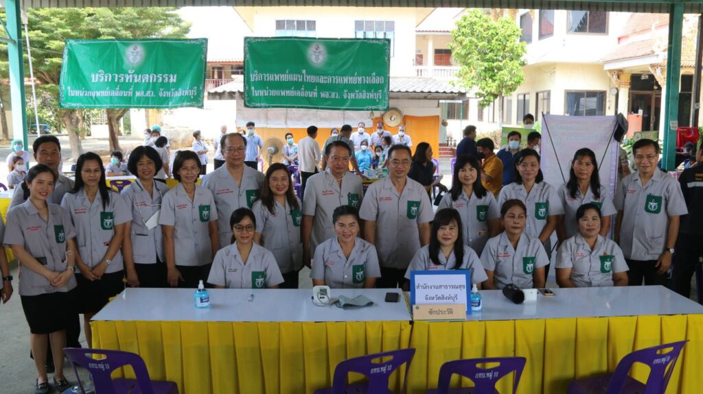 วันที่ 24 มีนาคม 2566 เวลา 9.00 น .นายสุพจน์ ยศสิงห์คำผู้ว่าราชการจังหวัดสิงห์บุรี พร้อมหน่วยแพทย์อาสาสมเด็จพระศรีนครินทราบรมราชชนนี(พอ.สว.)ร่วมกับหน่วยงานราชการออกให้บริการประชาชนโครงการหน่วยบำบัดทุกข์บำรุงสุขสร้างรอยยิ้มให้ประชาชนจังหวัดสิงห์บุรี ณ วัดแหลมทอง หมู่ 10 ตำบลงิ้วราย อำเภออินทร์บุรี จังหวัดสิงห์บุรี โดยมี นายสัมฤทธิ์ กองเงิน พร้อมนายสมชาย ลีหล้าน้อย รองผู้ว่าราชการจังหวัดสิงห์บุรี รองนายกเหล่ากาชาดจังหวัดสิงห์บุรี นายอำเภออินทร์บุรี หัวหน้าส่วนราชการ ตำรวจ ทหาร อบต.งิ้วราย และกำนัน ผู้ใหญ่บ้าน ร่วมดำเนินกิจกรรมเชิงรุกด้วยการนำส่วนราชการหน่วยงานภาครัฐ ภาคเอกชน ออกมาให้บริการแก่ประชาชน เพื่อลดภาระค่าใช้จ่ายของประชาชน ที่จะต้องเดินทางเข้าไปติดต่อราชการในตัวจังหวัด เพื่อสนองความต้องการของประชาชน ให้เข้าถึงบริการภาครัฐได้ง่ายขึ้น จากนโยบายสำคัญประการหนึ่งของรัฐบาลและกระทรวงมหาดไทย คือการปรับปรุงระบบบริการประชาชนให้เป็นเชิงรุก อันนำไปสู่การแก้ไขปัญหาให้กับประชาชน ให้มีความเป็นอยู่ที่ดี ขึ้น