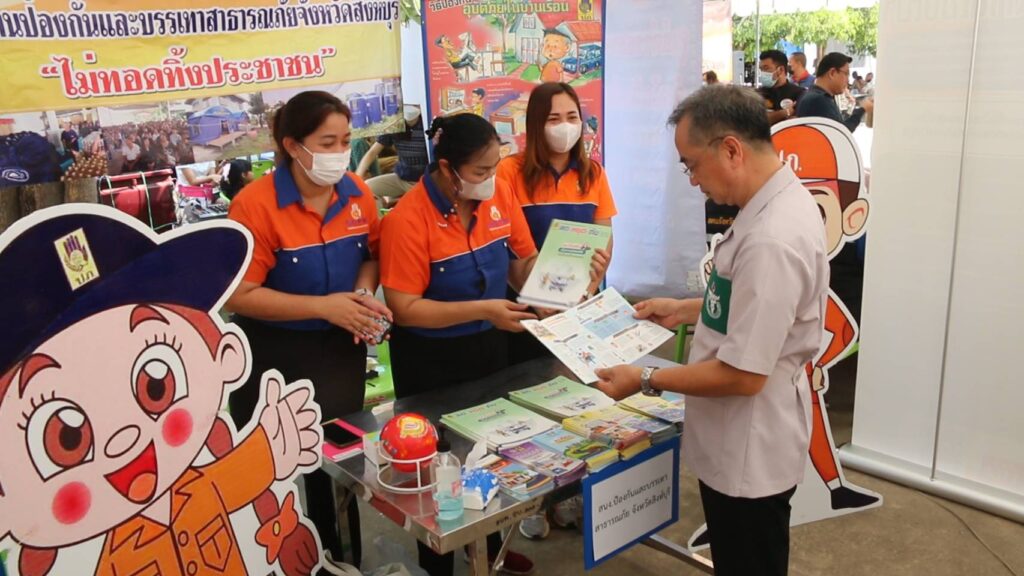โดยภายในงานมีกิจกรรมมอบทุนการศึกษาให้นักเรียนและมอบถุงยังชีพ เครื่องอุปโภค บริโภคให้แก่ประชาชน ผู้สูงอายุ ในพื้นที่ตำบลงิ้วราย หน่วยแพทย์อาสาสมเด็จพระศรีนครินทราบรมราชชนนี(พอ.สว.)ให้บริการปรึกษาด้านสุขภาพ ทันตกรรม และให้คำแนะนำ ศูนย์ดำรงธรรมจังหวัด รับฟังปัญหา การร้องทุกข์ เหล่ากาชาดจังหวัดแจกแว่นสายตาผู้สูงอายุ สำนักงานขนส่งจังหวัดให้บริการต่อภาษีรถ สำนักงานโยธาธิการและผังเมืองจังหวัด ให้คำปรึกษาด้านงานช่างแจกแบบบ้านเพื่อประชาชน หน่วยงานในสังกัดกระทรวงเกษตร และสหกรณ์ สนับสนุนเมล็ดพันธุ์พืชและสารชีวภัณฑ์ป้องกันและกำจัดศัตรูพืชให้คำแนะนำโครงการที่มีประโยชน์ต่อเกษตรกร การจัดสรรและพัฒนาที่ดินทำกิน การจัดทำบัญชีครัวเรือน การจัดตั้งสหกรณ์ให้คำแนะนำการเพาะเลี้ยงสัตว์น้ำ, ปศุสัตว์ ทำหมันให้สุนัขและแมวฟรี พาณิชย์จัดโครงการธงฟ้าลดค่าครองชีพของประชาชนหน่วยงานในสังกัดกระทรวงแรงงาน รับปรึกษาปัญหาด้านแรงงานสาธิตการฝึกอาชีพรับสมัครผู้ประกันตนตามมาตรา 40 กศน.สิงห์บุรีออกบริการห้องสมุดเคลื่อนที่พัฒนาสังคมและความมั่นคงของมนุษย์ แจกของใช้ที่จำเป็นให้กับผู้สูงอายุและผู้พิการฟรี และอีกหลายหน่วยงานในจังหวัดสิงห์บุรีออกมา บำบัดทุกข์ บำรุงสุข สร้างรอยยิ้มให้ประชาชนจังหวัดสิงห์บุรีเป็นประจำทุกเดือน