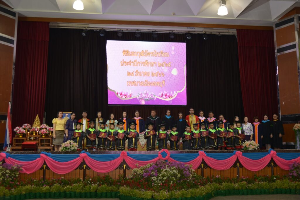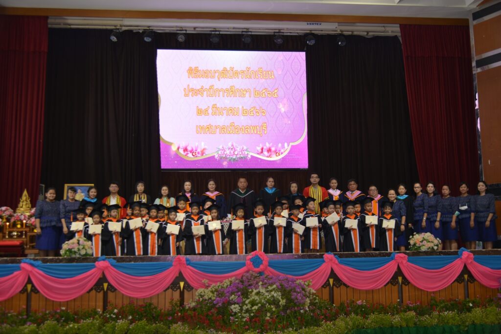 นายจำเริญ สละชีพ นายกเทศมนตรีเมืองลพบุรี เป็นประธานในการจัดพิธีมอบวุฒิบัตรนักเรียนชั้นอนุบาล ของโรงเรียนในสังกัดเทศบาลเมืองลพบุรี ประจำปีการศึกษา ๒๕๖๕ ที่ศาลาประชาคมเทศบาลเมืองลพบุรี ซึ่งมีคณะผู้บริหารเทศบาลเมืองลพบุรี ประกอบด้วย นายสมชัย เตือนวชาติ เลขานุการนายกเทศมนตรีเมืองลพบุรี คณะสมาชิกสภาเทศบาลเมืองลพบุรี ผู้บริหารสถานศึกษาของโรงเรียนในสังกัดเทศบาลเมืองลพบุรี ทั้ง ๕ โรงเรียน คณะครู ผู้ปกครองนักเรียน ร่วมในพิธีเป็นจำนวนมาก ซึ่งในปีการศึกษานี้ มีนักเรียนโรงเรียนในสังกัดเทศบาลเมืองลพบุรีที่สำเร็จการศึกษาในระดับชั้นอนุบาล ทั้งหมดจำนวน ๑๔๙ คน เป็นโรงเรียนเทศบาล ๑ ระบบสาธิตเทศบาลเมืองลพบุรี จำนวน ๔๔ คน โรงเรียนเทศบาล ๒ ระบบสาธิตเทศบาลเมืองลพบุรี จำนวน ๕๘ คน โรงเรียนเทศบาล ๓ ระบบสาธิตเทศบาลเมืองลพบุรี จำนวน ๑๘ คน โรงเรียนเทศบาล ๕ ระบบสาธิตเทศบาลเมืองลพบุรี จำนวน ๒๙ คน