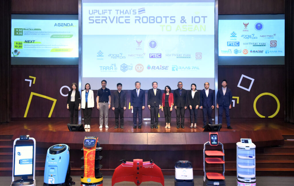 เมื่อวันที่ 23 มีนาคม 2566) ณ ห้องออดิทอเรียม ชั้น 3 อาคารซอฟต์แวร์พาร์ค แจ้งวัฒนะ กรุงเทพฯ : กระทรวงการอุดมศึกษา วิทยาศาสตร์ วิจัยและนวัตกรรม (อว.) สำนักงานพัฒนาวิทยาศาสตร์และเทคโนโลยีแห่งชาติ (สวทช.) โดยเขตอุตสาหกรรมซอฟต์แวร์ประเทศไทย ศูนย์ทดสอบผลิตภัณฑ์ไฟฟ้าและอิเล็กทรอนิกส์ (PTEC) และห้องปฏิบัติการทดสอบซอฟต์แวร์ (SQUAT) ศูนย์เทคโนโลยีอิเล็กทรอนิกส์และคอมพิวเตอร์แห่งชาติ (เนคเทค) ร่วมกับสำนักงานคณะกรรมการกิจการกระจายเสียง กิจการโทรทัศน์และกิจการโทรคมนาคมแห่งชาติ (กสทช.) โดยกองทุนวิจัยและพัฒนากิจการกระจายเสียง กิจการโทรทัศน์ และกิจการโทรคมนาคม เพื่อประโยชน์สาธารณะ (กทปส.) จัดสัมมนาเปิดตัว “โครงการยกระดับศักยภาพอุตสาหกรรมผลิตภัณฑ์หุ่นยนต์บริการและผลิตภัณฑ์ Internet of Things (IoT) ของไทยสู่อาเซียน” Uplift Thai’s Service Robots and Internet of Things (IOT) to ASEAN เพื่อยกระดับผู้ประกอบการ เสริมศักยภาพ และเพิ่มขีดความสามารถในการแข่งขันได้อย่างมั่นคงและยั่งยืน อีกทั้งเป็นการผลักดันให้ประเทศไทยแข็งแกร่งในด้านอุตสาหกรรมผลิตภัณฑ์หุ่นยนต์บริการและผลิตภัณฑ์ Internet of Things (IoT) ทัดเทียมนานาประเทศ โดยการนำความรู้ด้านวิทยาศาสตร์และเทคโนโลยี มาช่วยให้ภาคอุตสาหกรรมสามารถดำเนินงานได้ดีมีประสิทธิภาพสูงขึ้น โดยงานสัมมนาได้รับเกียรติจาก ศาสตราจารย์ ดร.ชูกิจ ลิมปิจำนงค์ ผู้อำนวยการ (สวทช.) เป็นประธานเปิดงาน