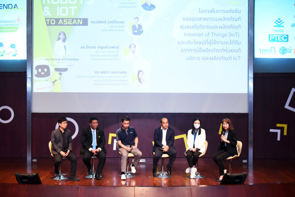 และผลิตภัณฑ์ Internet of Things (IoT)” นำโดย ดร.ไกรสร อัญชลีวรพันธ์ ผู้อำนวยการศูนย์ทดสอบผลิตภัณฑ์ไฟฟ้าและอิเล็กทรอนิกส์ (PTEC),ดร.พนิตา เมนะเนตร นักวิจัยห้องปฏิบัติการทดสอบซอฟต์แวร์ (SQUAT) ศูนย์เทคโนโลยีอิเล็กทรอนิกส์และคอมพิวเตอร์แห่งชาติ (เนคเทค),ดร.นิพัทธ์ รัศมีโกเมน ผู้จัดการทั่วไป บริษัท พีทีที เรส จำกัด,ดร.มหิศร ว่องผาติ ประธานเจ้าหน้าที่บริหารและผู้ก่อตั้ง บริษัท ไฮฟ์กราวนด์ จำกัด และ นายอัครพล สุขตา กรรมการบริหาร สมาคมไทยไอโอที พร้อมด้วย ดร.ภัทราวดี พลอยกิติกูล ผู้อำนวยการเขตอุตสาหกรรมซอฟต์แวร์ประเทศไทย ร่วมเป็นผู้ดำเนินรายการ