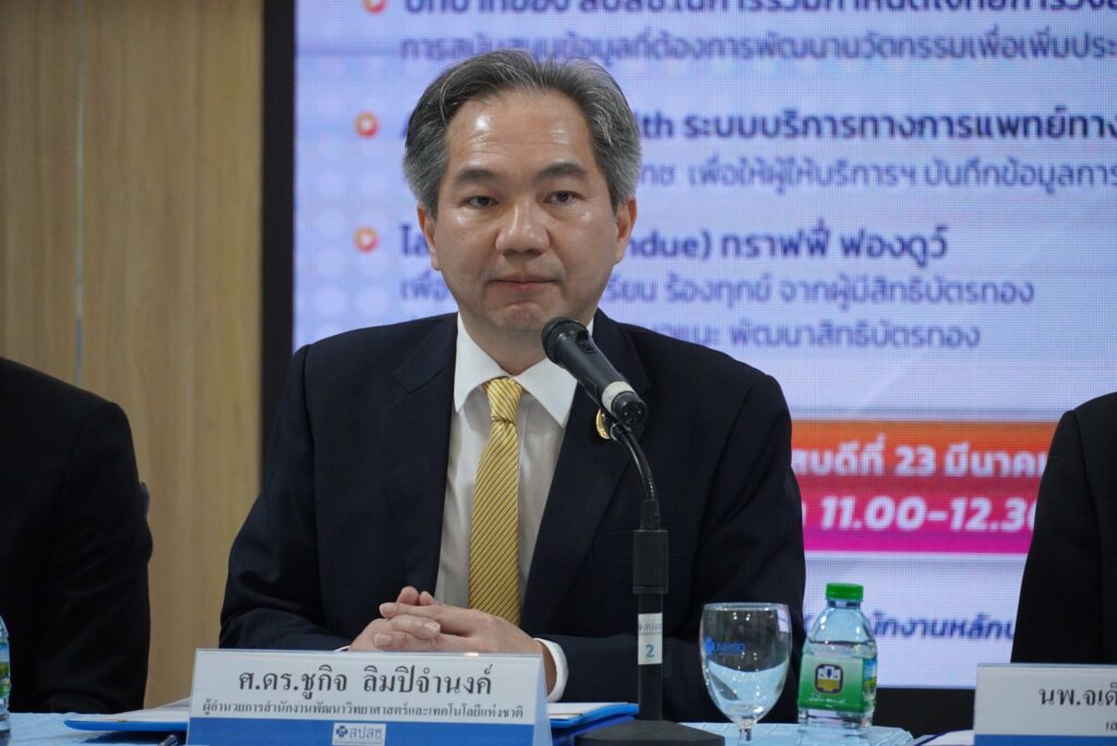 ศาสตราจารย์ ดร.ชูกิจ ลิมปิจำนงค์ ผู้อำนวยการสำนักงานพัฒนาวิทยาศาสตร์และเทคโนโลยีแห่งชาติ (สวทช.) กล่าวว่า (สวทช.) เห็นความสำคัญของการทำงานร่วมกับ (สปสช.) ในการนำวิทยาศาสตร์ เทคโนโลยี และนวัตกรรม (วทน.) ไปใช้เพื่อก่อให้เกิดประโยชน์กับประชาชนในวงกว้างและเป็นรูปธรรม สำหรับบทบาทและหน้าที่ของ (สวทช.) ภายใต้ความร่วมมือนี้ (สวทช.) จะนำพลังความรู้ ทางวิทยาศาสตร์และเทคโนโลยีและนักวิจัยเข้ามาช่วยสร้างและพัฒนานวัตกรรมร่วมกับ (สปสช.)