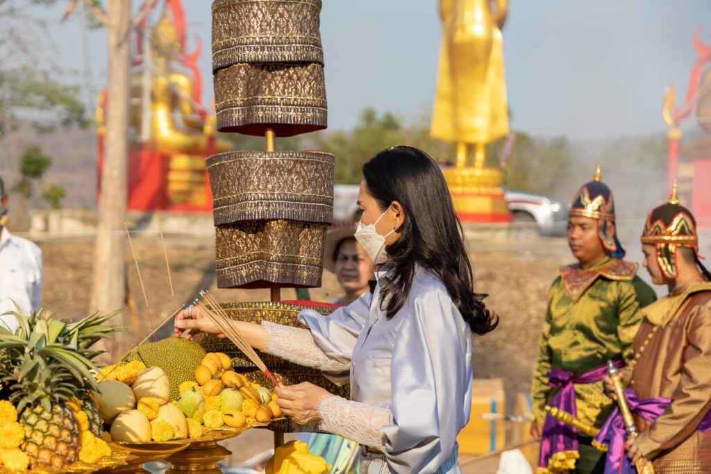 เป็นประธานในพิธีเททองหล่อ สมเด็จพระนเรศวรมหาราช,สมเด็จพระเอกาทศรถและสมเด็จพระพี่นางสุพรรณกัลยา และวางศิลาฤกษ์พลับพลาที่ประทับ