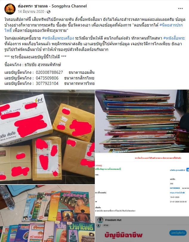 ตามนโยบายของพล.ต.อ.ดำรงศักดิ์ กิตติประภัสร์ ผบ.ตร. และ พล.ต.อ.รอย อิงคไพโรจน์ รอง ผบ.ตร./ผอ.ศูนย์ปราบปรามอาชญากรรมทางเทคโนโลยี PCT ให้ปราบปรามกลุ่มเครือข่ายองค์กรอาชญากรรมที่กระทำความผิดในโลกออนไลน์ทุกรูปแบบซึ่งสร้างความเดือดร้อนให้กับประชาชนผู้สุจริต โดยชุดลาดตระเวนออนไลน์ บก.สส.บช.น. ได้ออกลาดตระเวนออนไลน์จนเห็นถึงความเดือดร้อนของประชาชนที่ถูกคนร้ายในนามนายหนุ่มศรีมหาโพธิตัวการใช้เฟซบุ๊กชื่อบัญชีต่างๆ อาทิชื่อบัญชี “Joyamity Zaza”,ชื่อบัญชี “Freedom”,ชื่อบัญชี “Freedom Hut”,ชื่อบัญชี “Farmhot Freedom”,ชื่อบัญชี “สวีทเอเดนท์ เฮ้าท์”,ชื่อบัญชี “วรานนท์ ซัพพลาย” เข้าไปโพสต์หลอกขายสินค้าหลากหลายประเภท ไม่ว่าจะเป็น หน้ากากอนามัย,หนังสือพระ,เหรียญพระเครื่อง,ตู้สแตนเลสใส่น้ำแข็ง,เก้าอี้บาร์,สเตชั่นวางเครื่องดื่ม,ถาดคอนโด,ตู้อุ่นร้อน,ถังน้ำแข็งสแตนเลสมือสอง,ชุดโต๊ะ,สเก็ตบอด ในกลุ่มสินค้ามือสองต่างๆ ซึ่งจากการตรวจสอบในฐานข้อมูลสำนักงานตำรวจแห่งชาติพบว่าปัจจุบันนายหนุ่มศรีมหาโพธิมีหมายจับอยู่ 4 หมาย อีกทั้งยังคงก่อเหตุสร้างความเดือดร้อนให้แก่ประชาชนอย่างต่อเนื่องในโลกออนไลน์อย่างต่อเนื่อง มีผู้เสียหายหลงเชื่อเดือนละกว่า 40 ราย มูลค่าความเสียหายรวมกว่า 8 ล้านบาท สืบนครบาลเร่งสืบสวนจับกุมตัวมาดำเนินคดีให้ได้โดยเร็ว เพื่อตัดวงจรการกระทำความผิด
