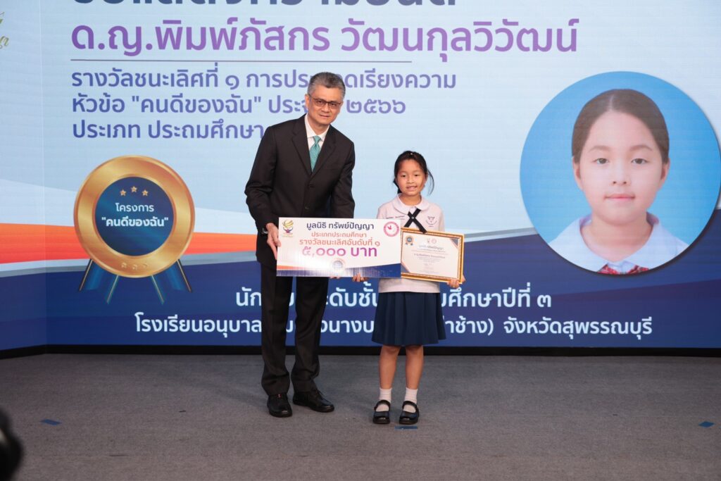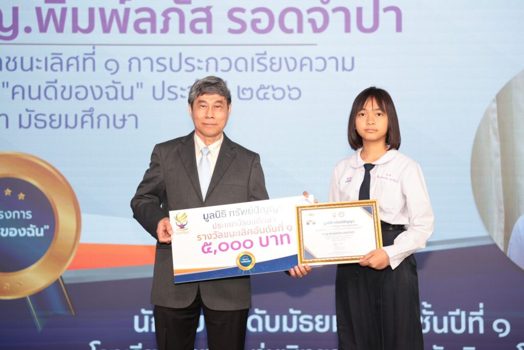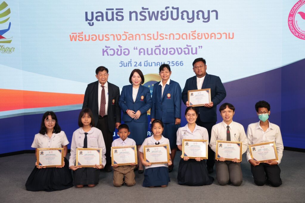 ทั้งนี้ ประธานมูลนิธิทรัพย์ปัญญา กล่าวว่า “โครงการประกวดเรียงความ หัวข้อ “คนดีของฉัน” ประจำปี ๒๕๖๖ สอดคล้องกับวัตถุประสงค์ของมูลนิธิฯ คือ การส่งเสริมการศึกษาและการวิจัย ส่งเสริมเยาวชนที่เป็นอนาคตของชาติ และเป็นการกระตุ้นเตือนให้เชิดชูคนดีในสังคม ให้เกิดความภาคภูมิใจ ขณะเดียวกันมูลนิธิฯ ก็ต้องการรณรงค์ ส่งเสริมให้เด็กและเยาวชน มีจิตสำนึกและค่านิยมที่ถูกต้อง ในการยกย่องเชิดชูคนดี ยึดมั่นในการทำความดี ซื่อสัตย์สุจริต เป็นคนดีในสังคมต่อไป
