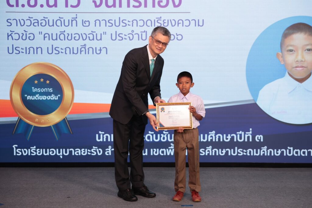 เอกรัฐ ษรานุรักษ์ คณะกรรมการ และที่ปรึกษามูลนิธิฯ และมีผู้บริหารของคณะนิเทศศาสตร์ ได้แก่ รศ.ดร.สุกัญญา บูรณเดชาชัย คณบดีคณะนิเทศศาสตร์ ผศ.ดร.พนม วรรณศิริ ประธานคณะกรรมการที่ปรึกษา คณะนิเทศศาสตร์ อาจารย์ตริฉัตร ชื่นศิลป์ หัวหน้าสาขานวัตกรรมการออกแบบสื่อและการผลิตสื่อ อาจารย์กฤติญา กวีจารุกรณ์ ผอ.สถานีโทรทัศน์ BTU Channel พร้อมทั้งคณาจารย์ ครู นักเรียน และผู้ปกครองเข้าร่วมแสดงความยินดีกับผู้ที่ได้รับรางวัลด้วยความประทับใจ ซึ่งภายในงานผู้ได้รับรางวัลก็ได้มีโอกาสเปิดใจพูดคุยกับพิธีกรบนเวทีถึงแรงบันดาลใจในการส่งเรียงความเข้าประกวด ซึ่งการตัดสินผู้ที่ได้รับรางวัลนั้น ประกอบด้วยคณะกรรมการผู้ทรงคุณวุฒิได้ดำเนินการพิจารณาตัดสินการประกวดเรียงความดังกล่าวเสร็จเรียบร้อยเมื่อวันที่ ๑๕ มีนาคม ๒๕๖๖ ได้มีผู้ชนะการประกวดจำนวน ๙ ท่าน ซึ่งรางวัลต่างๆ แบ่งประเภท ได้แก่ ประถมศึกษา มัธยมศึกษา อุดมศึกษา และประชาชนทั่วไป โดยระบุรางวัล ดังนี้ รางวัลชนะเลิศอันดับที่ ๑ มูลค่า ๕,๐๐๐ บาท (จำนวน ๔ รางวัล) รางวัลอันดับที่ ๒ มูลค่า ๒,๐๐๐ บาท (จำนวน ๔ รางวัล) และรางวัลพิเศษ ประเภทประชาชนทั่วไป “เพื่อเป็นกำลังใจให้บุคคลทำความดี” มูลค่า ๒,๐๐๐ บาท (จำนวน ๑ รางวัล) รวมมูลค่าทั้งสิ้น ๓๐,๐๐๐ บาท โดยมีผู้เข้ารับรางวัลประเภทต่างๆ ดังนี้