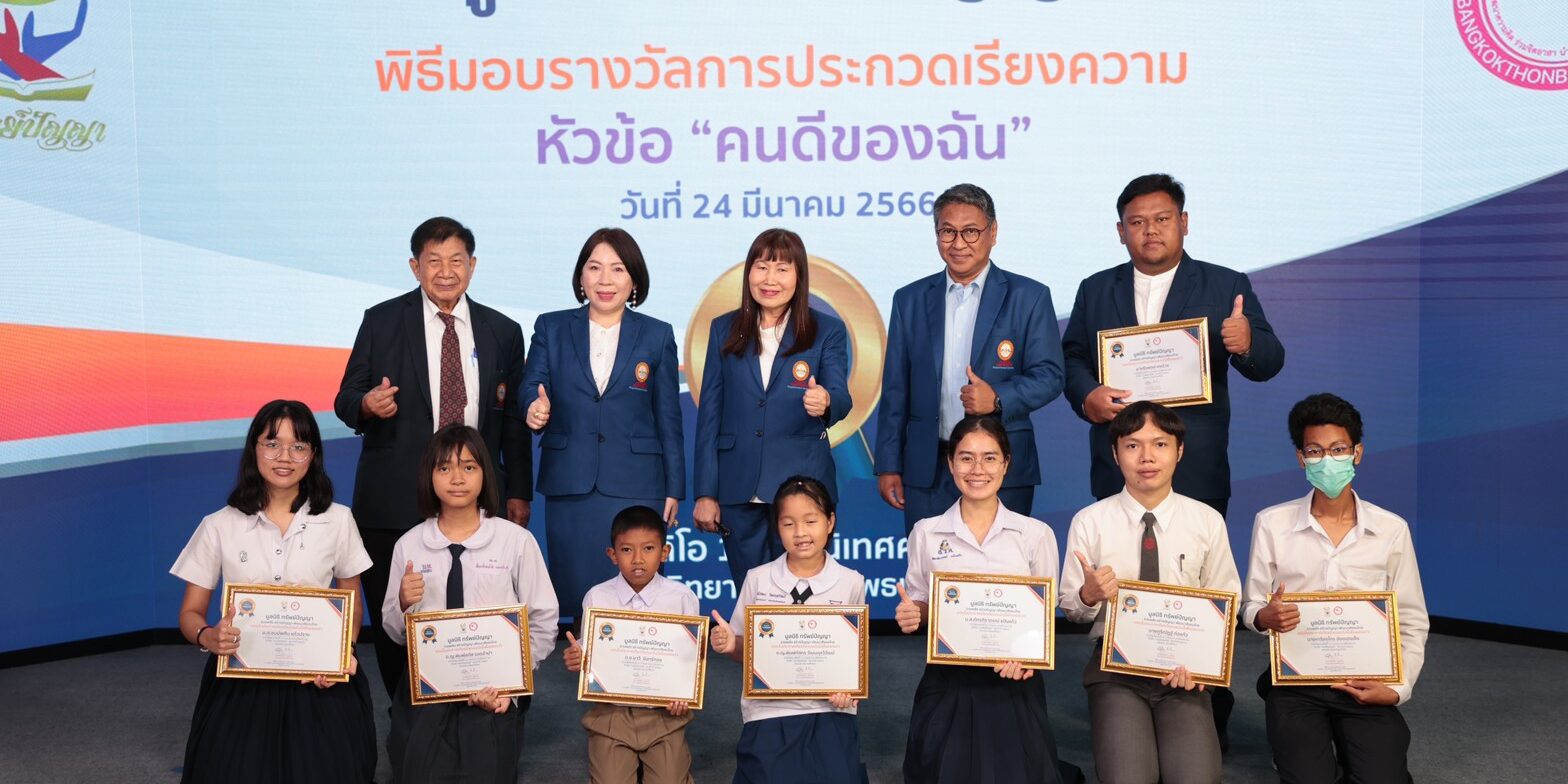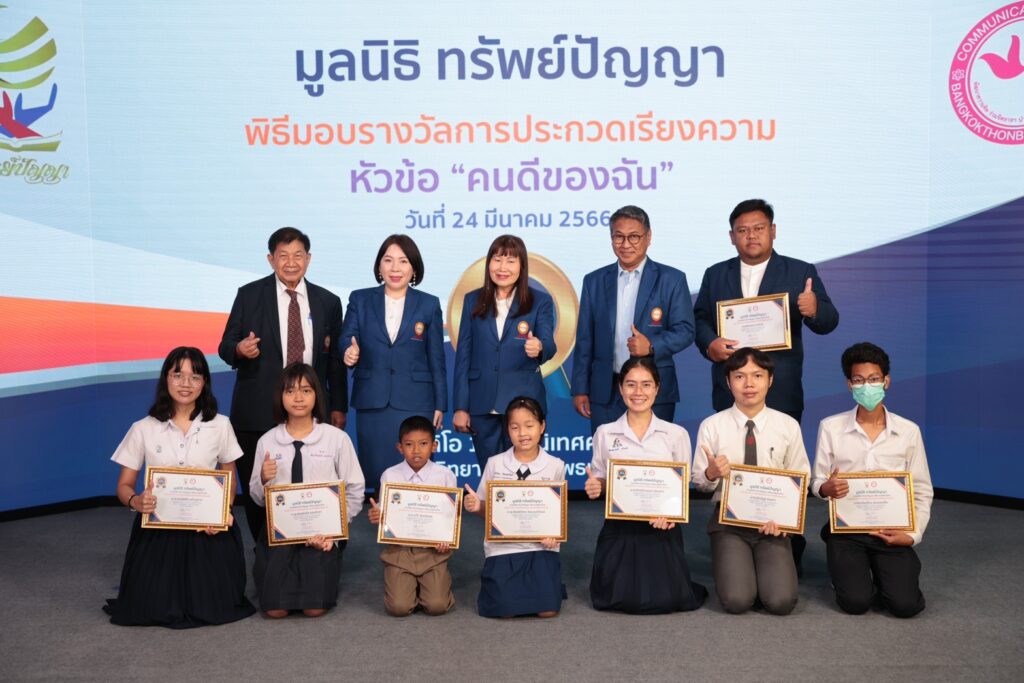 คณะนิเทศศาสตร์ มหาวิทยาลัยกรุงเทพธนบุรี ร่วมกับมูลนิธิทรัพย์ปัญญา ได้มีการจัดพิธีมอบรางวัลและเกียรติบัตรประกาศเกียรติคุณ ให้กับผู้ชนะการประกวดเรียงความ หัวข้อ “คนดีของฉัน” ประจำปี ๒๕๖๖ ภายใต้โครงการ “คนดีของฉัน” โดยมีนายณัฐภัทร สุขแดง ประธานกรรมการมูลนิธิทรัพย์ปัญญา เป็นประธานในพิธี พร้อมด้วย คุณหนึ่งหทัย สุขแดง คุณวิจิตร แตงน้อย คุณจักกฤษณ์ ชุมสาย ณ อยุธยา และพลอากาศเอก