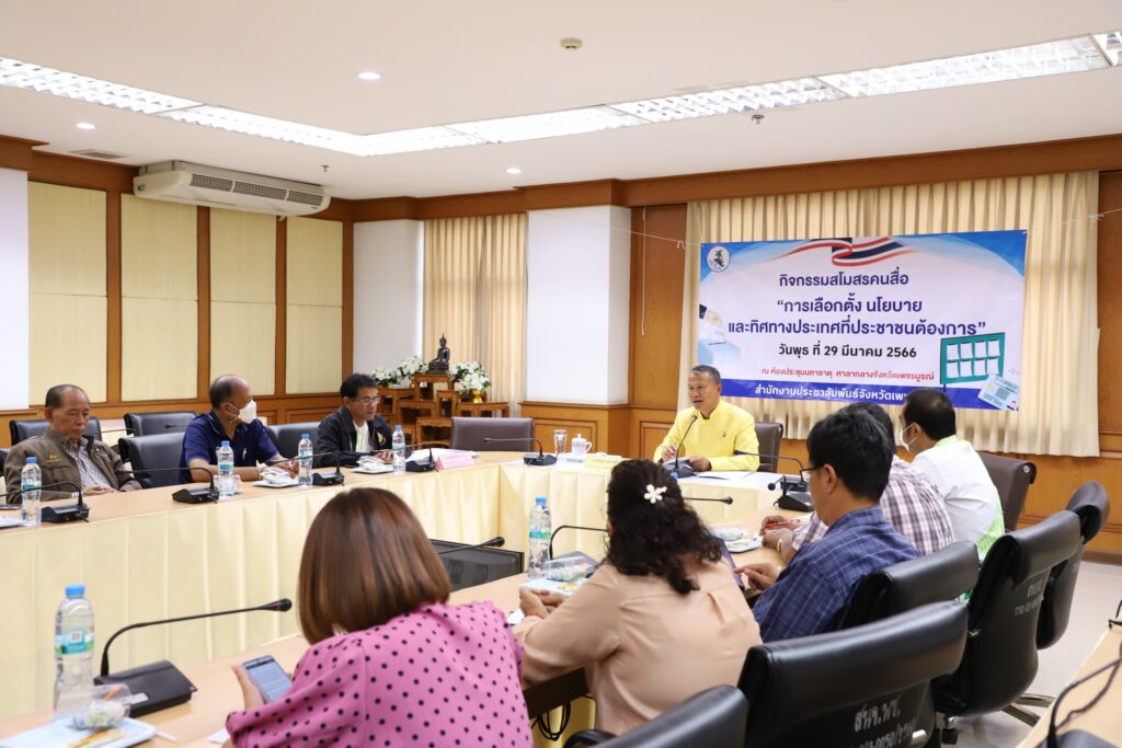 ที่ห้องประชุมมหาธาตุ ศาลากลางจังหวัดเพชรบูรณ์ นายชนก มากพันธุ์ รองผู้ว่าราชการจังหวัดเพชรบูรณ์ เป็นประธานเปิดกิจกรรมสโมสรคนสื่อ“การเลือกตั้ง นโยบาย และทิศทางประเทศที่ประชาชนต้องการ” ตามโครงการการรับฟังเสียงประชาชนทุกภาคส่วน เพื่อนำมาประกอบการพิจารณาและตัดสินใจ ประจำปีงบประมาณ 2566 โดยมี นายคันฉัตร เพียรวิจัยธรณี ประชาสัมพันธ์จังหวัดเพชรบูรณ์ กล่าวรายงาน พร้อมด้วย เครือข่ายสื่อมวลชน และเจ้าหน้าที่ประชาสัมพันธ์ของหน่วยงานภาครัฐ เข้าร่วม