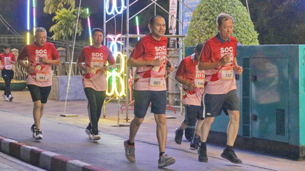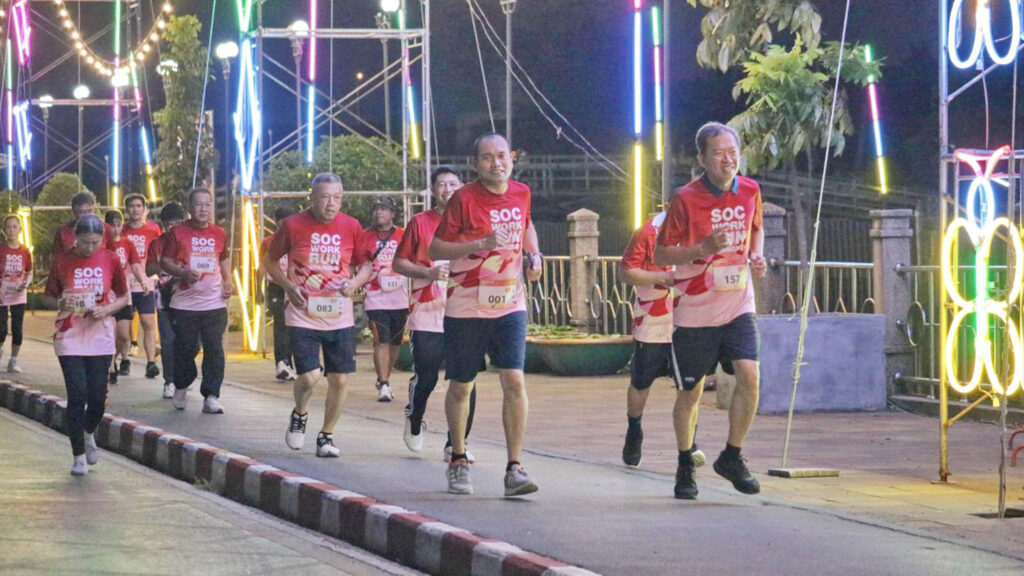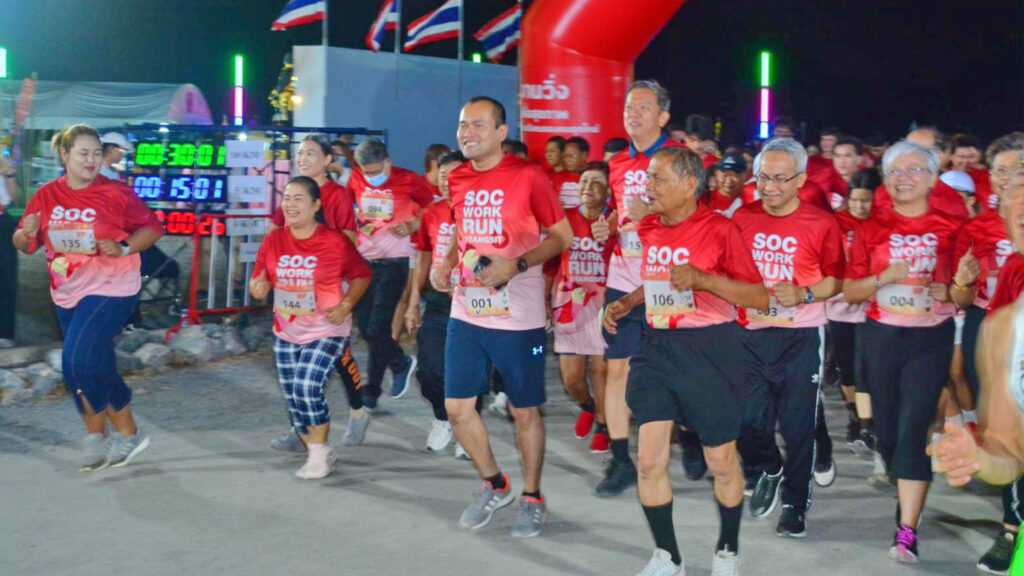 โดยบรรยากาศมหกรรมงานวิ่ง SOC WORK RUN @RANGSIT มีการนำอบอุ่นร่างกาย (Warming up) จากนั้นเวลา 05.00 น. ปล่อยตัวนักวิ่งระยะ 10 กิโลเมตร จากนั้นเวลา 05.15 น. ปล่อยตัวนักวิ่งระยะ 5 กิโลเมตร และ เวลา 05.30 น. ปล่อยตัวนักวิ่งระยะ 3 กิโลเมตร โดยเส้นทางวิ่งจะเป็นเส้นเลียบคลองรังสิตและวิ่งวนกลับมายังจุดเริ่มต้นที่ประตูน้ำจุฬาลงกรณ์ จากนั้นมีการมอบเหรียญให้กับผู้เข้าร่วมกิจกรรม และมอบถ้วยรางวัลให้ผู้ที่ชนะเลิศเข้าอันดับหนึ่ง สำหรับวัตถุประสงค์ในการจัดมหกรรมงานวิ่ง SOC WORK RUN @RANGSIT เพื่อมอบทุนสนับสนุนด้านการศึกษา และเป็นกิจกรรมการท่องเที่ยวของนครรังสิต เพื่อรณรงค์ให้เยาวชน ประชาชนคนไทย ออกกำลังกายเพื่อสุขภาพและห่างไกลยาเสพติดด้วยการเดินและวิ่งเพื่อสุขภาพ และสานสัมพันธ์และสร้างพลังสามัคคีของคนในชุมชน