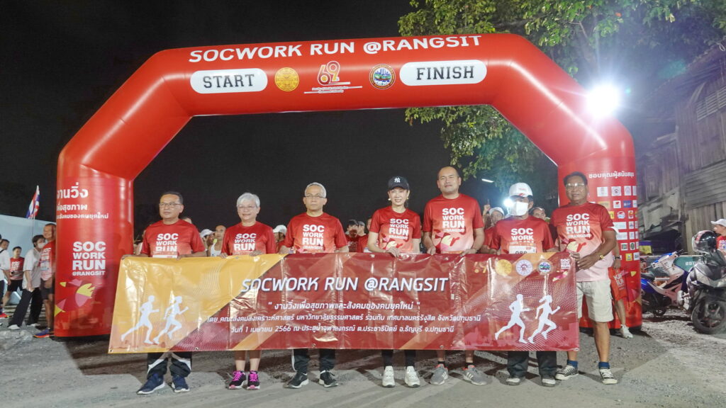 ร้อยตำรวจเอก ดร.ตรีลุพธ์ ธูปกระจ่าง นายกเทศมนตรีนครรังสิต กล่าวว่า โครงการ SOC WORK RUN @RANGSIT เกิดขึ้นจากเทศบาลนครรังสิต องค์การบริหารส่วนจังหวัดปทุมธานี ร่วมกับ คณะสงเคราะห์ มหาวิทยาลัยธรรมศาสตร์ รังสิต ร่วมสมทบทุนโครงการนี้เพื่อที่จะช่วยในเรื่องการศึกษาให้น้อง ๆ เยาวชน ครั้งนี้ได้จัดขึ้นครั้งแรก ซึ่งจะมีการจัดในครั้งต่อ ๆ ไป ต้องขอบคุณทุกฝ่ายที่ให้ความร่วมมือร่วมใจกันมาร่วมกิจกรรมในสถานที่แห่งนี้คือ ประตูน้ำจุฬาลงกรณ์ เป็นสถานที่ที่สมเด็จพระจุลจอมเกล้าเจ้าอยู่หัว ได้พระราชทานชื่อประตูน้ำจุฬาลงกรณ์ไว้ ปีนี้เป็นปีที่127 เราสำนึกในพระมหากรุณาธิคุณของพระองค์ท่าน เราจะทำให้สถานที่แห่งนี้เป็นปอดของชาวรังสิต เป็นสถานที่พักผ่อนของพี่น้องประชาชน รวมถึงถานที่แห่งนี้จะเป็นลานกิจกรรมต่าง ๆ ในอนาคต ขอให้ครั้งหน้าเรามาร่วมกิจกรรมดี ๆ กันอีก นอกจากนี้ทางนครรังสิตได้จัดถนนคนเดิน “เดิน กิน ชิม เที่ยว” เพื่อกระตุ้นเศรษฐกิจฐานรากในชุมชนของเรา โดยได้รับความร่วมมือจากท้องถิ่นต่าง ๆ ทางภาคมหาวิทยาลัยและสถานศึกษาต่าง ๆ ที่เรามาร่วมกันในการตั้งบูธและร้านค้า มีการแสดงต่าง ๆ ในจังหวัดปทุมธานี จึงของเชิญชวนให้พี่น้องประชาชนมาเยี่ยมชม มาเดินเล่น โดยจะจัดขึ้นทุกวันศุกร์ เสาร์ อาทิตย์ สิ้นเดือนของทุกเดือนตลอดไป.