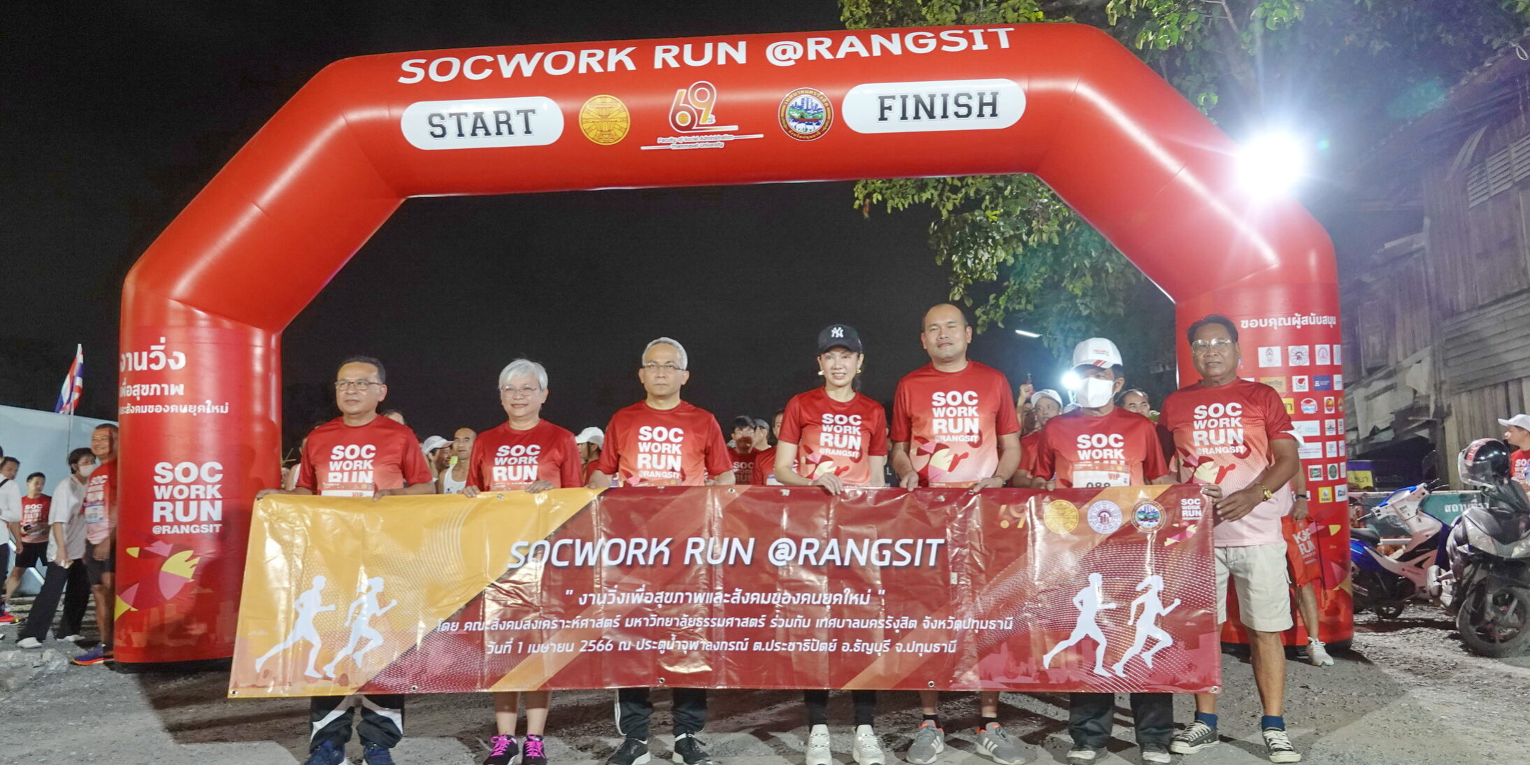 เมื่อเวลา 05.00 น. วันที่ 1 เมษายน 2566 ที่บริเวณประตูน้ำจุฬาลงกรณ์ ตำบลประชาธิปัตย์ อำเภอธัญบุรี จังหวัดปทุมธานี ร้อยตำรวจเอก ดร.ตรีลุพธ์ ธูปกระจ่าง (ดร.โบว์ลิ่ง) นายกเทศมนตรีนครรังสิต เป็นประธานเปิดมหกรรมงานวิ่ง SOC WORK RUN @RANGSIT เพื่อมอบทุนสนับสนุนด้านการศึกษา โดยมีประชาชนมาร่วมกิจกรรมกว่า 1,000 คน