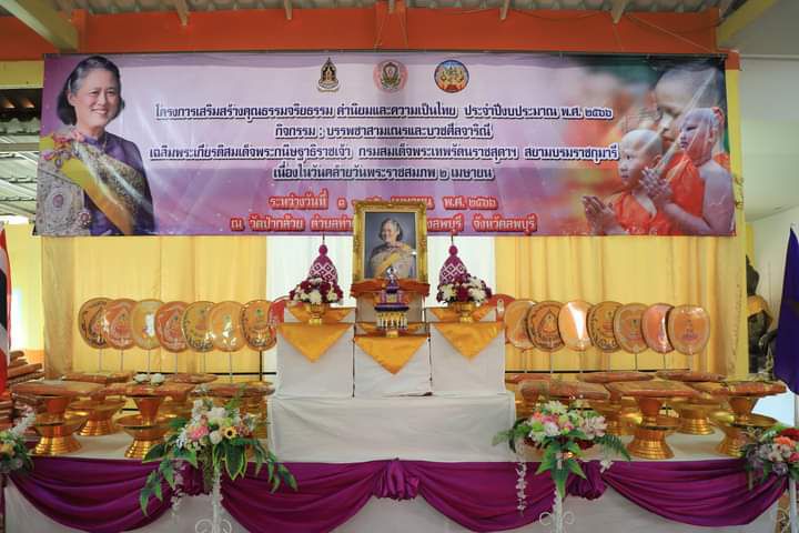วันที่ 1 เมษายน 2566 เวลา 10.30 น. ที่ วัดป่ากล้วย ตำบลท่าแค อำเภอเมืองลพบุรี จังหวัดลพบุรี นายปรัชญา เปปะตัง รองผู้ว่าราชการจังหวัดลพบุรี เป็นประธานในพิธีบรรพชาอุปสมบทพระภิกษุสามเณรและบวชศีลจาริณี ถวายเป็นพระราชกุศลเฉลิมพระเกียรติสมเด็จพระกนิษฐาธิราชเจ้า กรมสมเด็จพระเทพรัตนราชสุดาฯ สยามบรมราชกุมารี ตามโครงการเสริมสร้างคุณธรรม จริยธรรม ค่านิยมและความเป็นไทย จังหวัดลพบุรี ประจำปี พ.ศ.2566 โดยมี พระครูทวีศักดิ์ ธัมมะธีโร เจ้าคณะตำบลโคกกระเทียม เป็นประธานฝ่ายสงฆ์ พระครูสมุห์เมธิวัฒน์ เจ้าอาวาสวัดป่ากล้วยพร้อมด้วย หัวหน้าส่วนราชการและพุทธศาสนิกชนร่วมพิธี ทั้งนี้สำนักงานวัฒนธรรมจังหวัดลพบุรี ร่วมกับ คณะสงฆ์จังหวัดลพบุรี ตลอดจนพุทธศาสนิกชนในจังหวัดลพบุรี ได้ร่วมกันจัดโครงการบรรพชาอุปสมบทพระภิกษุสามเณรและบวชศีลจาริณี โครงการเสริมสร้างคุณธรรม จริยธรรม ค่านิยมและความเป็นไทย จังหวัดลพบุรี ประจำปี พ.ศ.2566 เพื่อถวายเป็นพระราชกุศลและเฉลิมพระเกียรติสมเด็จพระกนิษฐาธิราชเจ้า กรมสมเด็จพระเทพรัตนราชสุดาฯ สยามบรมราชกุมารี เนื่องในโอกาสวันคล้ายวันพระราชสมภพ 2 เมษายน 2566 อีกทั้งเป็นการส่งเสริมให้เด็กเยาวชนและประชาชนได้ศึกษาหลักธรรมคำสอนทางพระพุทธศาสนา มีจิตสำนึกในคุณงามความดี เป็นคนดี ตลอดจนเห็นคุณค่าของวัฒนธรรมและประเพณีที่ดีงามของไทย โดยผู้เข้าร่วมโครงการจะได้รับการศึกษาอบรมตามหลักสูตรศาสนศึกษาของกรมศาสนาและคณะสงฆ์ ซึ่งสามารถนำไปประยุกต์ใช้ในชีวิตประจำวัน พัฒนาตนเองให้เป็นพลเมืองที่ดีของสังคมและประเทศชาติต่อไป