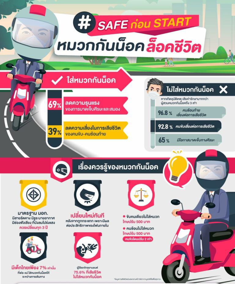 รู้หรือไม่…ผู้ใช้รถจักรยานยนต์ 75.6% ที่เสียชีวิตไม่ใส่หมวกกันน็อค และมีเด็กไทยเพียง 7% เท่านั้น ที่พ่อ-แม่ ใส่หมวกกันน็อคให้ระหว่างการเดินทาง วันนี้เราจึงนำเรื่องราวของ หมวกกันน็อคล็อคชีวิต มาฝากผู้ใช้รถจักรยานยนต์ทุกคน “เพราะบนท้องถนนไม่มีระยะปลอดภัยสำหรับคนไม่ใส่หมวก”