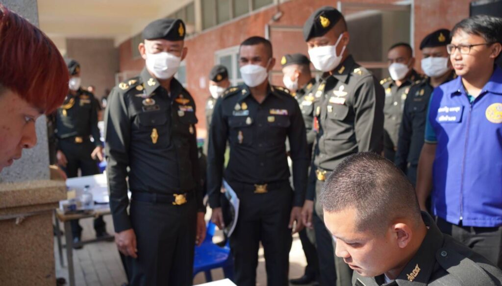 ในวันนี้มีชายไทยเข้าคัดเลือกทหารจำนวนประ มาณ 200 กว่าคน
