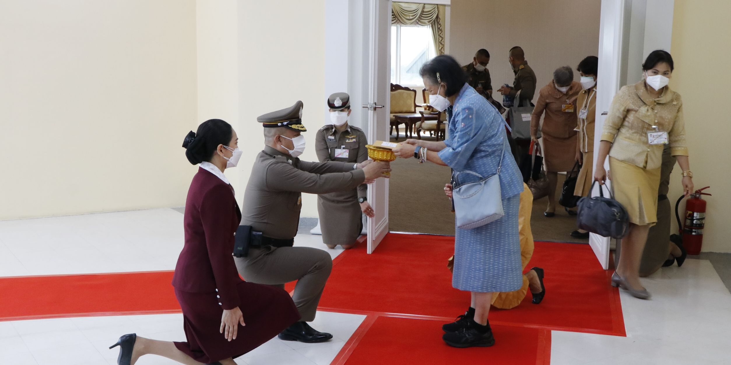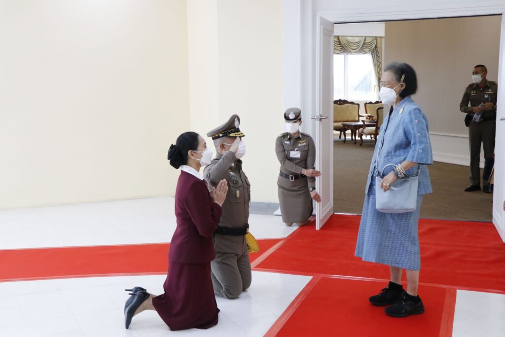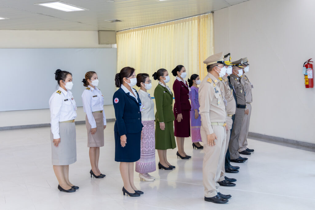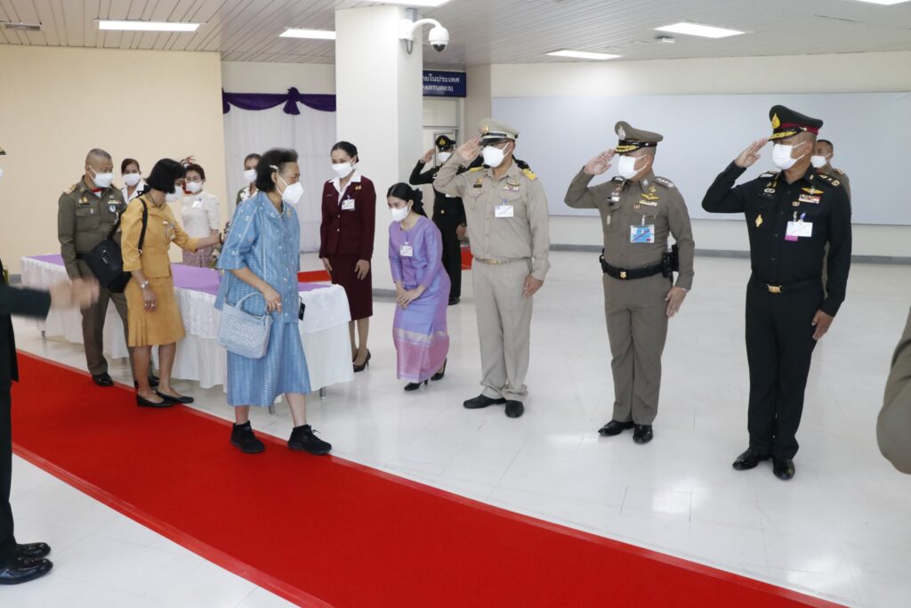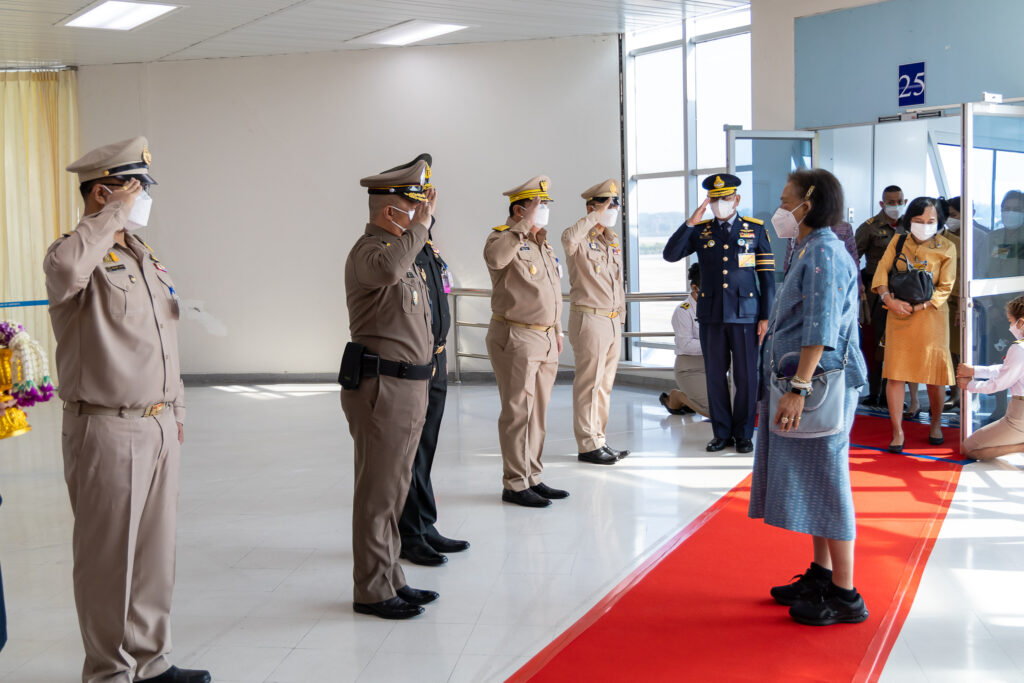 นางภคมน พิมลศรี ประธานชมรมแม่บ้านตำรวจภูธรภาค 6 และหัวหน้าส่วนราชการ, ข้าราชการตำรวจ,ทหาร,ประชาชน เฝ้ารับ-ส่งเสด็จ