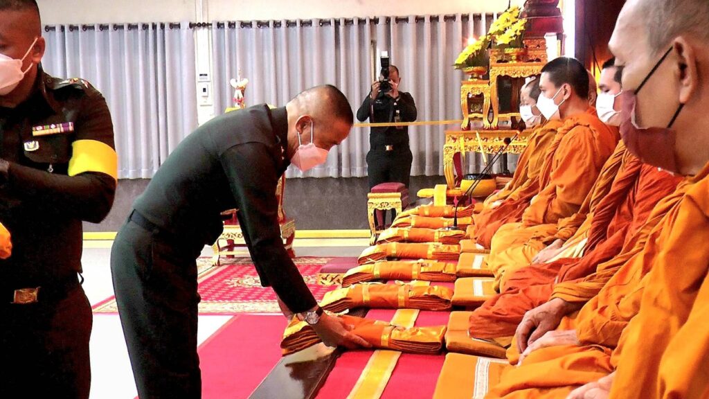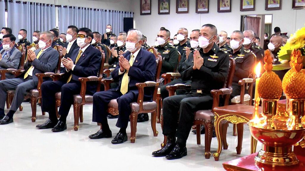 จากนั้น ประธานคณะที่ปรึกษากองทัพบก พร้อมคณะ ได้เดินทางไปยัง ตึกกองบัญชาการกองพลทหารปืนใหญ่ เพื่อประกอบพิธีสงฆ์ เพื่อความเป็นสิริมงคลแก่กำลังพล ข้าราชการของหน่วย ตลอดจนอุทิศส่วนกุศลให้แก่กำลังพลที่เสียชีวิต ในการปกป้องอธิปไตยชองชาติ ในสมรภูมิต่างๆ ที่ผ่านมา