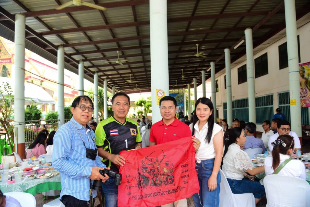 เวลา 10:30 น. เดินทางถึงวัดม่วงชุม ร่วมพิธีงานบำเพ็ญกุศล อุทิศถวายบูรพาจารย์ พระครูรัตนธาร (เยื้อน กิตฺติคุโณ) อดีตเจ้าคณะอำเภอบางระจัน อดีต เจ้าอาวาสวัดม่วงชุม และร่วมพิธีทอดผ้าป่า เพื่อบำรุงพระพุทธศาสนา บูรณะเมรุ วัดม่วงชุม มอบปัจจัยจำนวน 141,499 บาท (หนึ่งแสนสี่หมื่นหนึ่งพันสี่ร้อยเก้าสิบเก้าบาทถ้วน) และพระมหาจินตวัฒน์ จารุวฑฺฒโน, ดร. เจ้าคณะตำบลไม้ดัด เจ้าอาวาสวัดม่วงชุม เป็นประธานฝ่ายสงฆ์