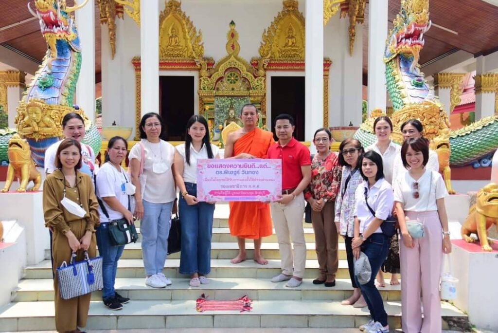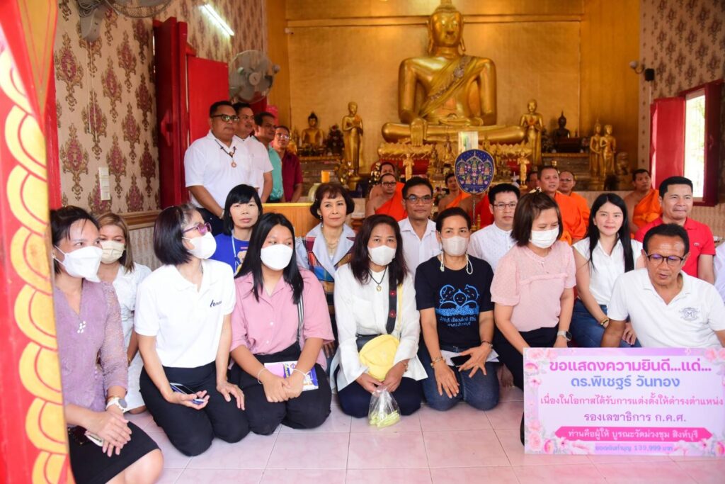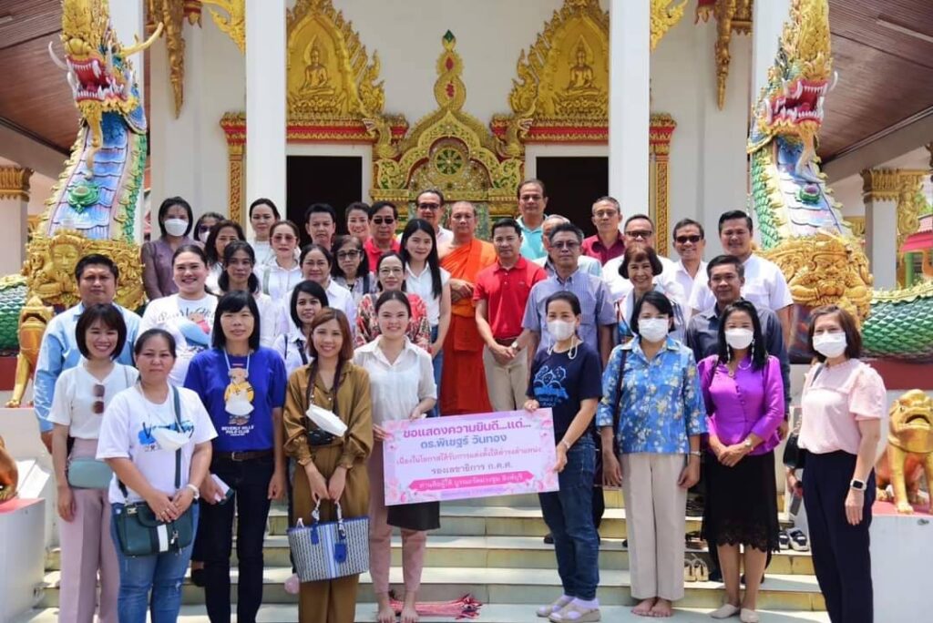 วันอาทิตย์ที่ 2 เมษายน พ.ศ. 2566 ดร.พิเชฐร์ วันทอง รองเลขาธิการ ก.ค.ศ. พร้อมด้วย ผศ.ดร.พรรณอร วันทอง เป็นสะพานบุญให้กับเพื่อน พี่ น้อง ด้วยการเปลี่ยนจากรับแจกันดอกไม้แสดงความยินดี เป็นร่วมกันบริจาคเพื่อบูรณะสิ่งก่อสร้างวัดม่วงชุม อำเภอบางระจัน จังหวัดสิงห์บุรี